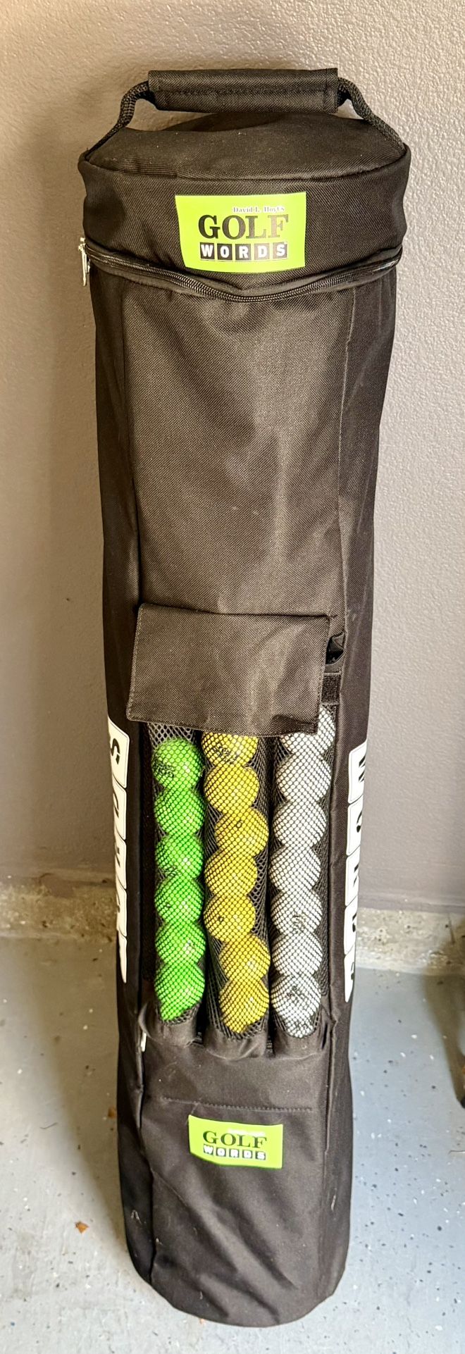 This game retails new for $300. Welcome to GolfWords: an innovative and captivating game for all ages, and ability levels! GolfWords blends putting with expertly crafted word games into an exciting, fun, and shareable gaming system versatile enough to suit any venue. GolfWords can be played alone, with your family or in small groups. It is easily scaleable when larger groups and social interactions are allowed. It can be played indoors or out – you just need a spot to roll out the game and you are ready to go! Play for 10 minutes or an hour with equal enjoyment! Fun and playability of GolfWords lie in its expert design, created by “The World’s Most Syndicated Puzzle Maker” and a PGA Teaching Professional. GolfWords is incredible and beneficial for golfers, people who love word games or puzzles, or even those just looking for a fun new activity to play. David L. Hoyt’s GolfWords gives you everything you need to play in one fun and convenient package. The GolfWords game kit includes the following: One 38” wide X 160” long high quality, rug-style game mat with a letter grid and scoring. indicators. The mat rolls out easily indoors or outside for play on any relatively smooth surface. 2 putting clubs, 1 an adult size of 33” and one junior size at 30”. Players can also use their own putters! 24 regulation golf balls, including 8 each in Yellow, White and Green to allow for multiple player combinations. 4 rings that can be placed on the game mat to allow for game play variation where players earn an extra turn or choose a letter of their choice if they putt into the ring. 12 “Mulligan chips”, including 4 each of yellow, white and green, that support tracking for player turns, extra scoring opportunities, etc. A Basics and Rules information sheet to get you started with play, with additional game variations and tips available on a regular basis at https://offerup.com/redirect/?o=R29sZldvcmRzLmNvbQ== All game components are contained easily and neatly in a carrying bag that is approximately the size of a standard golf bag. The sturdy bag has carrying handles on the top and side for easy transport. The bag will store easily in a closet, corner or other small area.