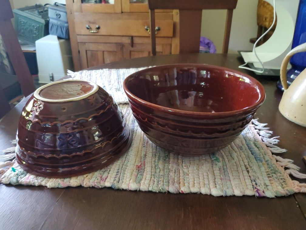 The California Pottery Mar-Crest, stoneware, ovenware is a set of 2 bowls is in like-new condition. The largest bowl measures 6" high x 9" diameter. The smaller bowl is 4" high x 8 "diameter. They are vintage from the 50's & early 60's. The style is Pennsylvania Dutch and the pattern is Daisy & Dot. I am asking $45.00 for the set of 2. Please check out my other listings of pottery, vintage items and plants . Thank you π!