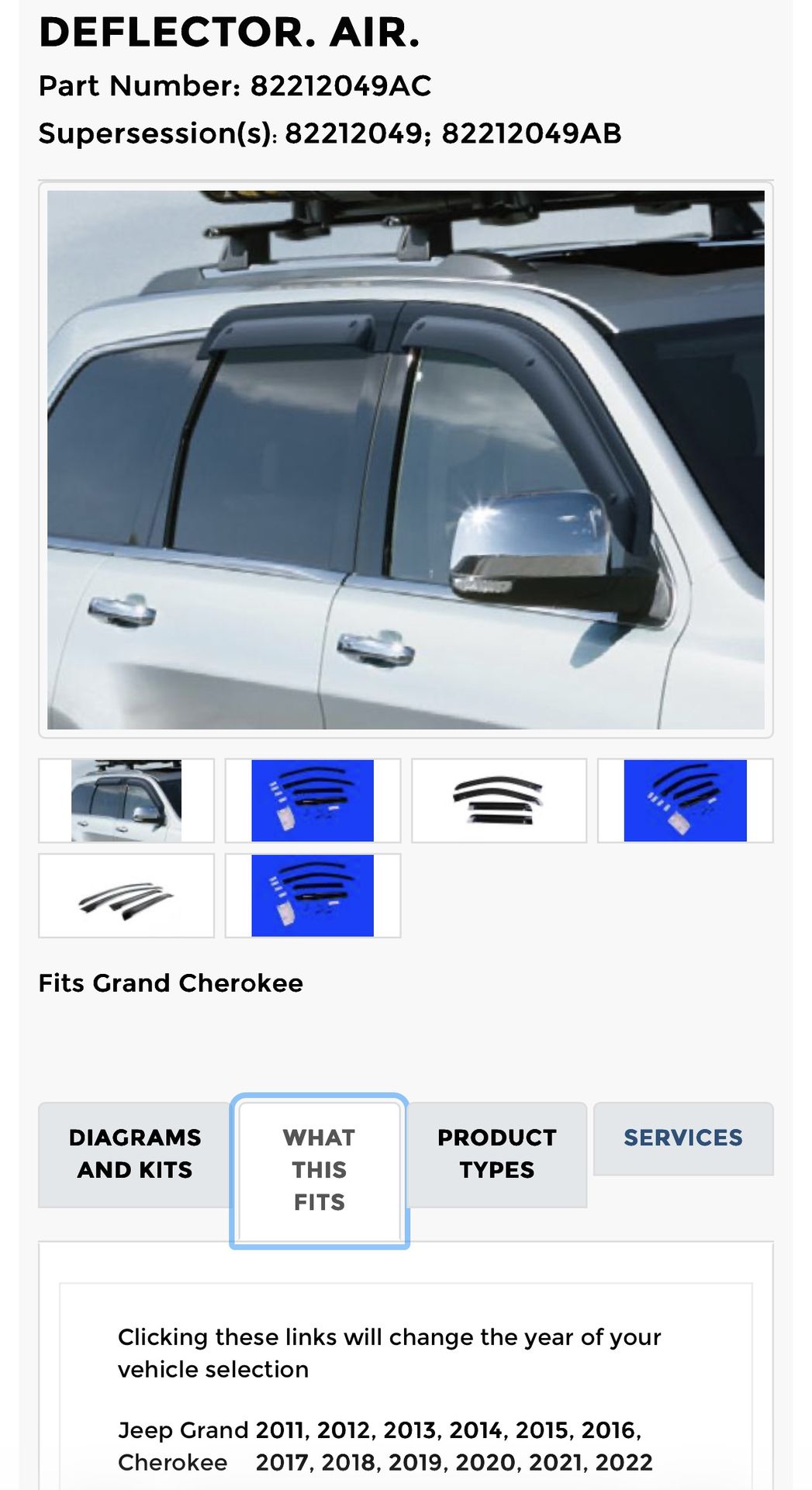 MOPAR DEFLECTOR Part Number: (contact info removed)9AC Supersession(S): (contact info removed)9; (contact info removed)9AB Fits Jeep Grand Cherokee 2011, 2012, 2013, 2014, 2015, 2016,2017, 2018, 2019, 2020, 2021, 2022