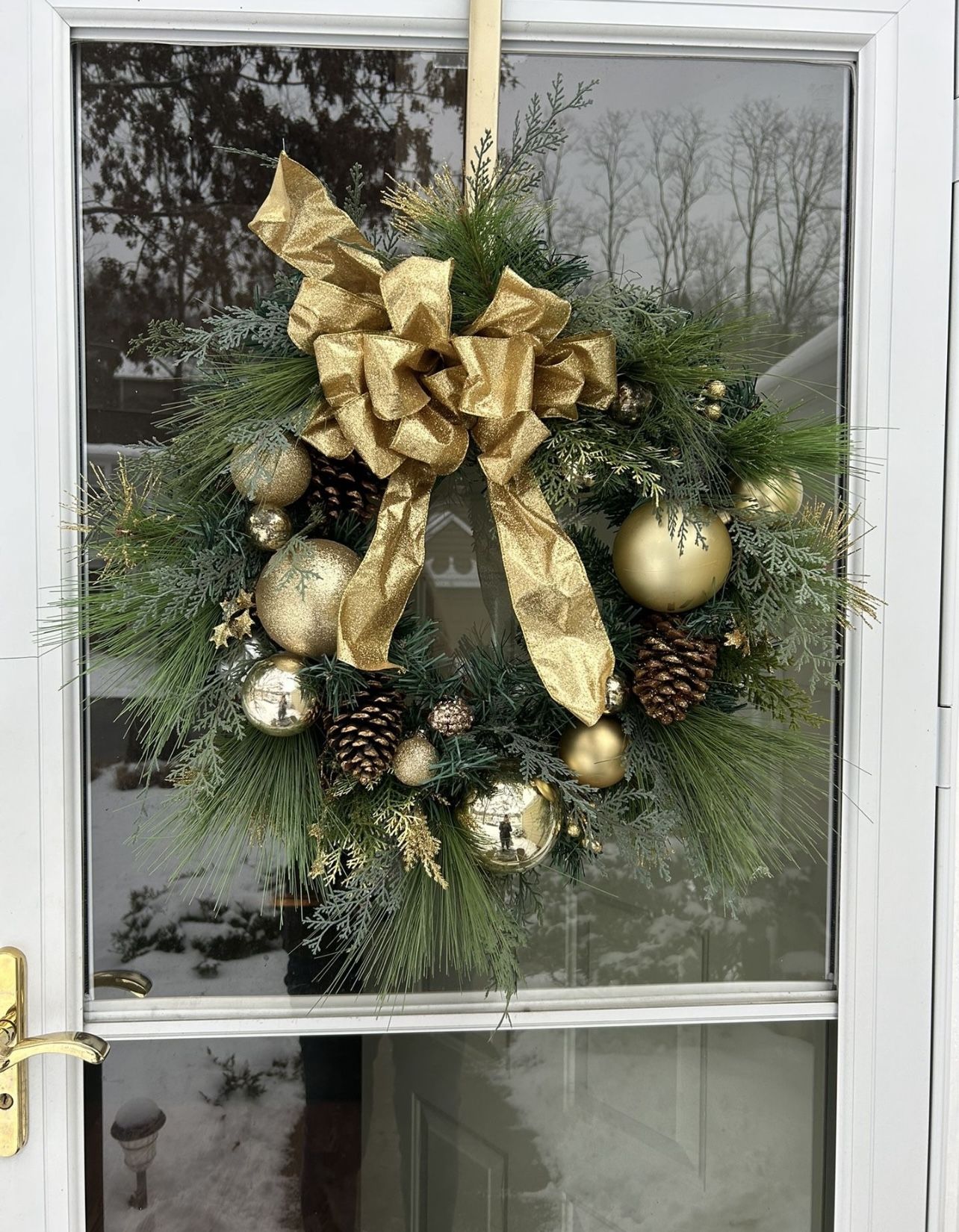 3 wreaths, gold bows and ornaments 3 matching swags, gold bows and ornaments $10 each, or all 6 for $50!!