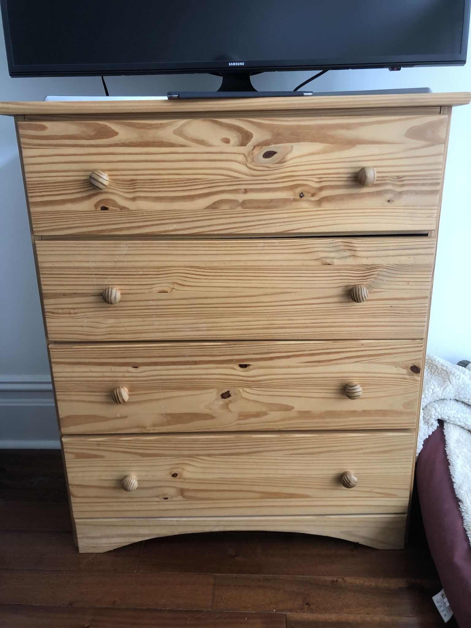 Dresser 38x16.5x32 height/width/length Tan side table 22x16x16.5 Darker brown table 26x24x24