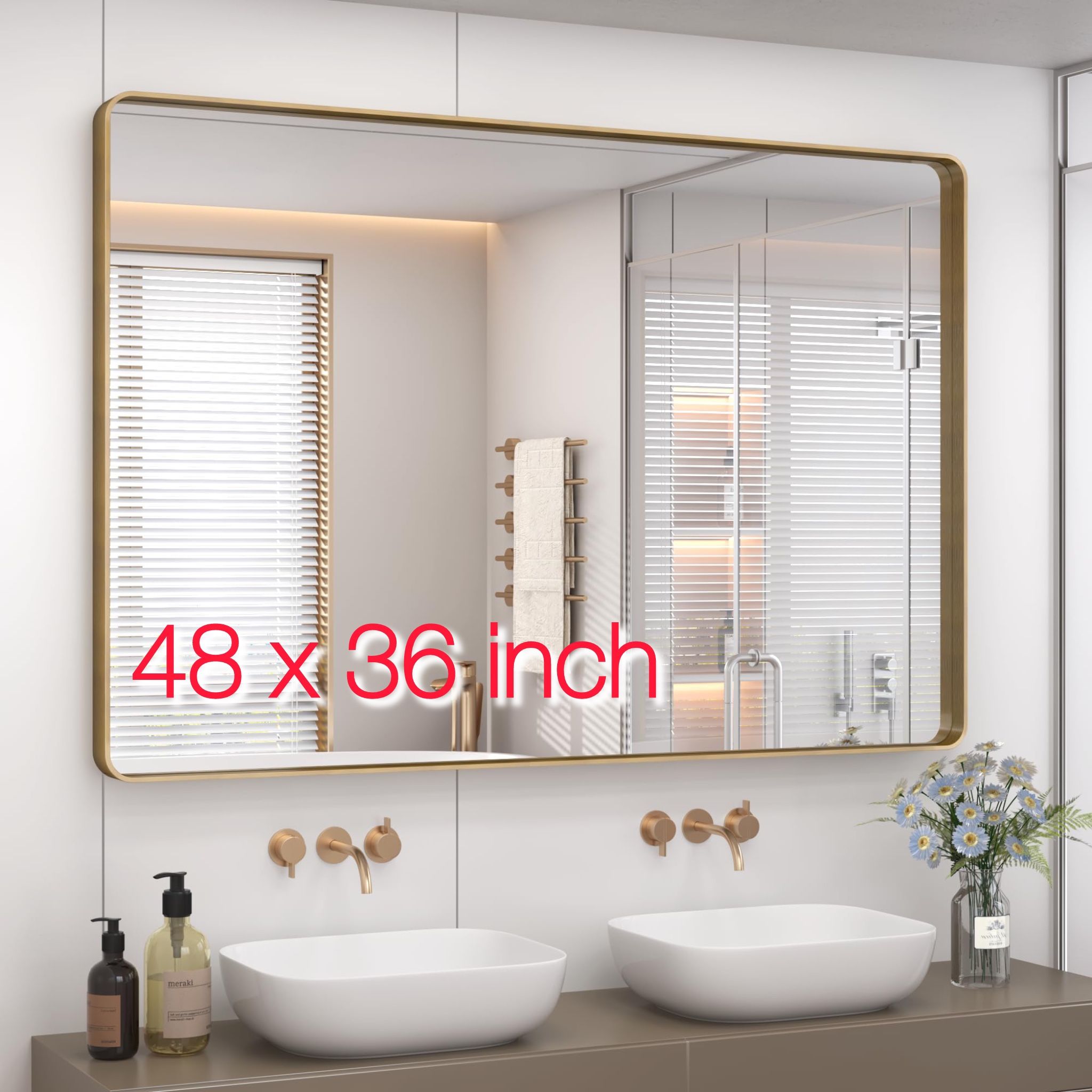 π Premium Brushed Gold Frame π‘οΈ Shatterproof & Anti-Rust π Hang Horizontal or Vertical π‘ Perfect for Double Vanities Upgrade your bathroom instantly with this 48β x 36β modern rounded rectangle mirror. Clean brass finish, sleek metal frame, and high-end designer look without the designer price. βοΈ Heavy-duty metal frame βοΈ Crystal clear reflection βοΈ Rust-resistant β built for bathrooms βοΈ Modern, luxury aesthetic π Size: 48βL x 36βW π¨ Color: Gold π¦ Brand New in Box gold mirror bathroom mirror 48x36 vanity mirror brushed brass mirror modern bathroom decor espejo dorado espejo baΓ±o luxury home remodel upgrade double sink vanity