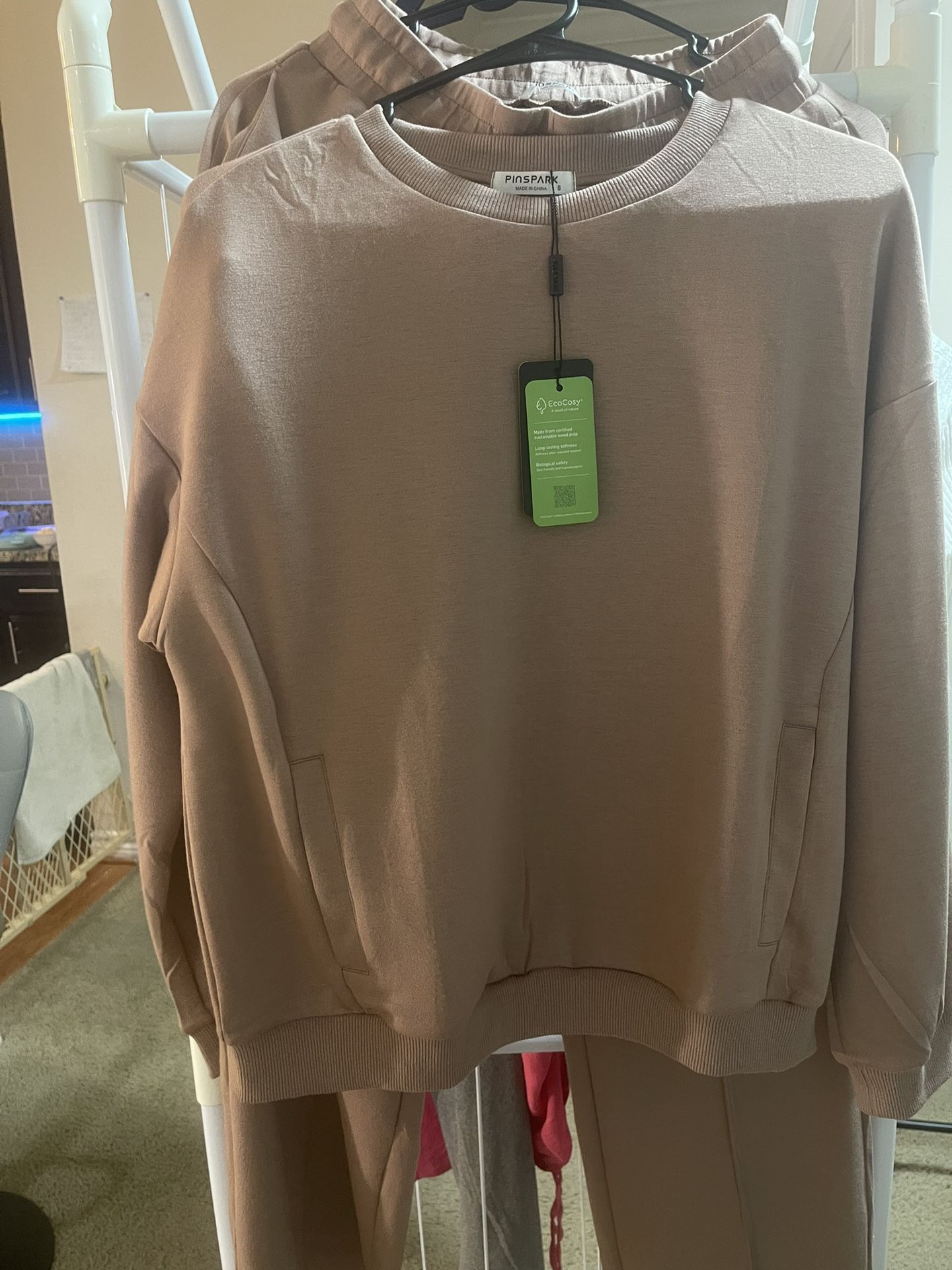 Selling tracksuit , mocha color Size s. Casual style, nice fabric. A good option for warm winter, fall and spring. The condition is new.