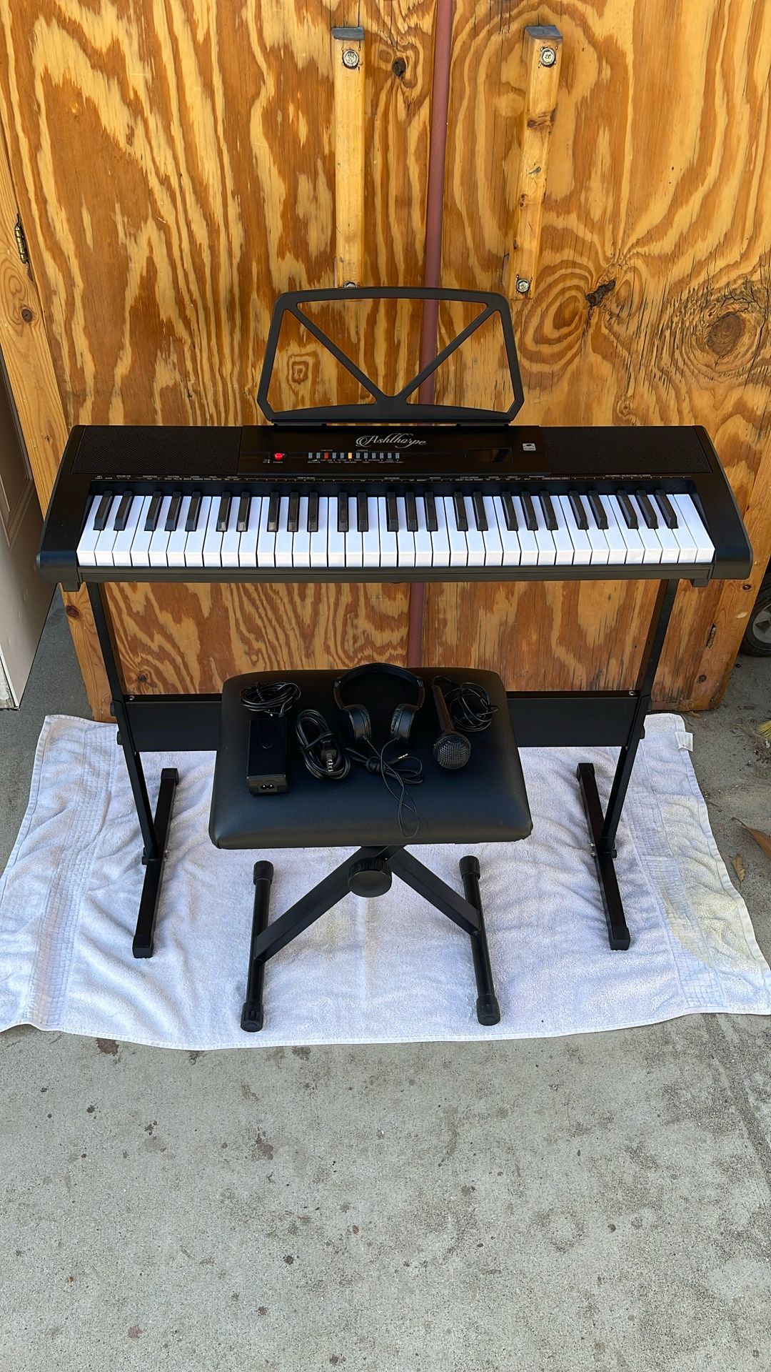 ASHTHARGE electric piano keyboard model: KEY-UNIT-741L-BLK, including plug, music placement, headphones and microphone. only used a handful of times. get it before it’s gone.!!