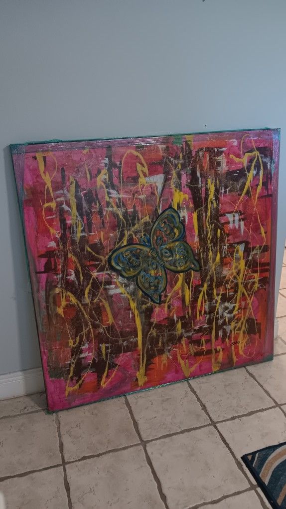 It is new art. Add a bold, modern statement to your space with this striking contemporary abstract artwork. Measuring 50 inches by 44 inches, this large piece instantly becomes the focal point of any room—exactly the kind of clean, stylish design people are looking to elevate their walls today. The artwork is new, in excellent condition, and features dynamic abstract elements that complement both minimalist and modern interiors. On the back, you’ll find a signed certificate of authenticity from the artist, ensuring its value and originality. Perfect for living rooms, offices, entryways, or any space that needs a sophisticated artistic touch. This is a standout piece that brings energy, depth, and contemporary style to your home. Next to Dadeland Mall. New Art