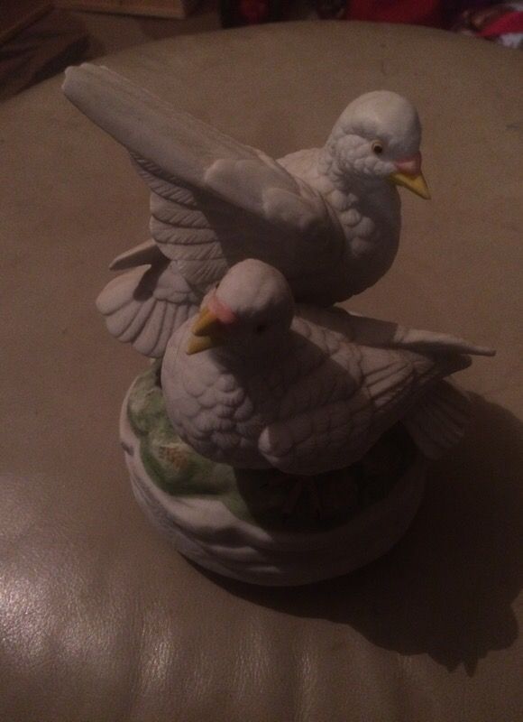 Music box with doves about 8 inches tall nice nothing wrong with it.