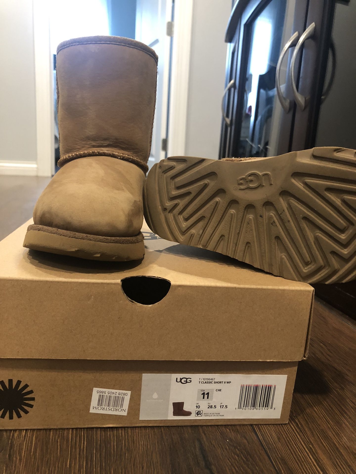 Just needs a little cleaning on a water stain comes right off with ugg cleaning kit kids 11 Original uggs
