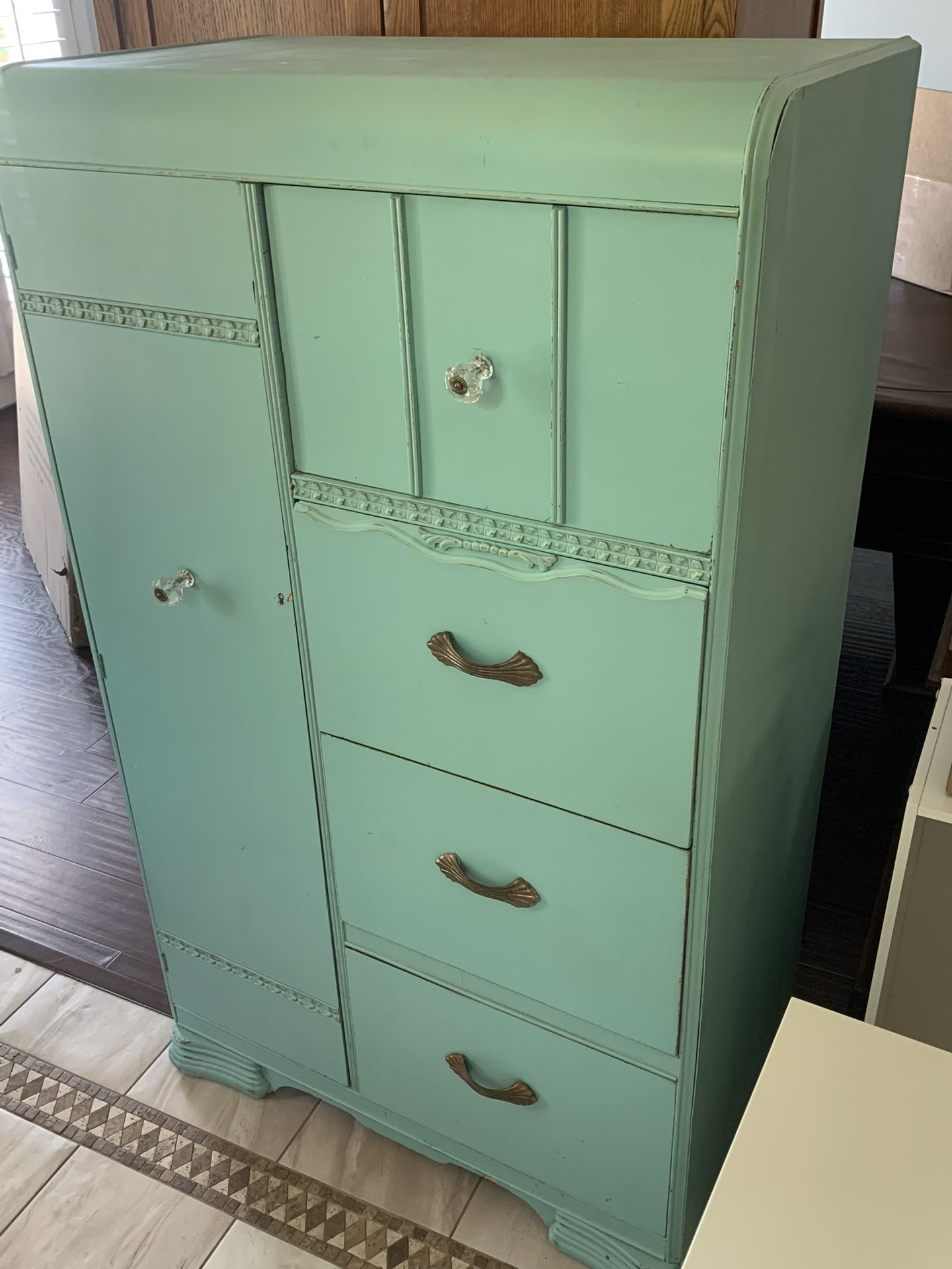 Antique wardrobe Waterfall style Chifferobe Art Deco Early 1900’s 61”H36”L21” Very nice piece Used in nursery Would love to keep, but no space