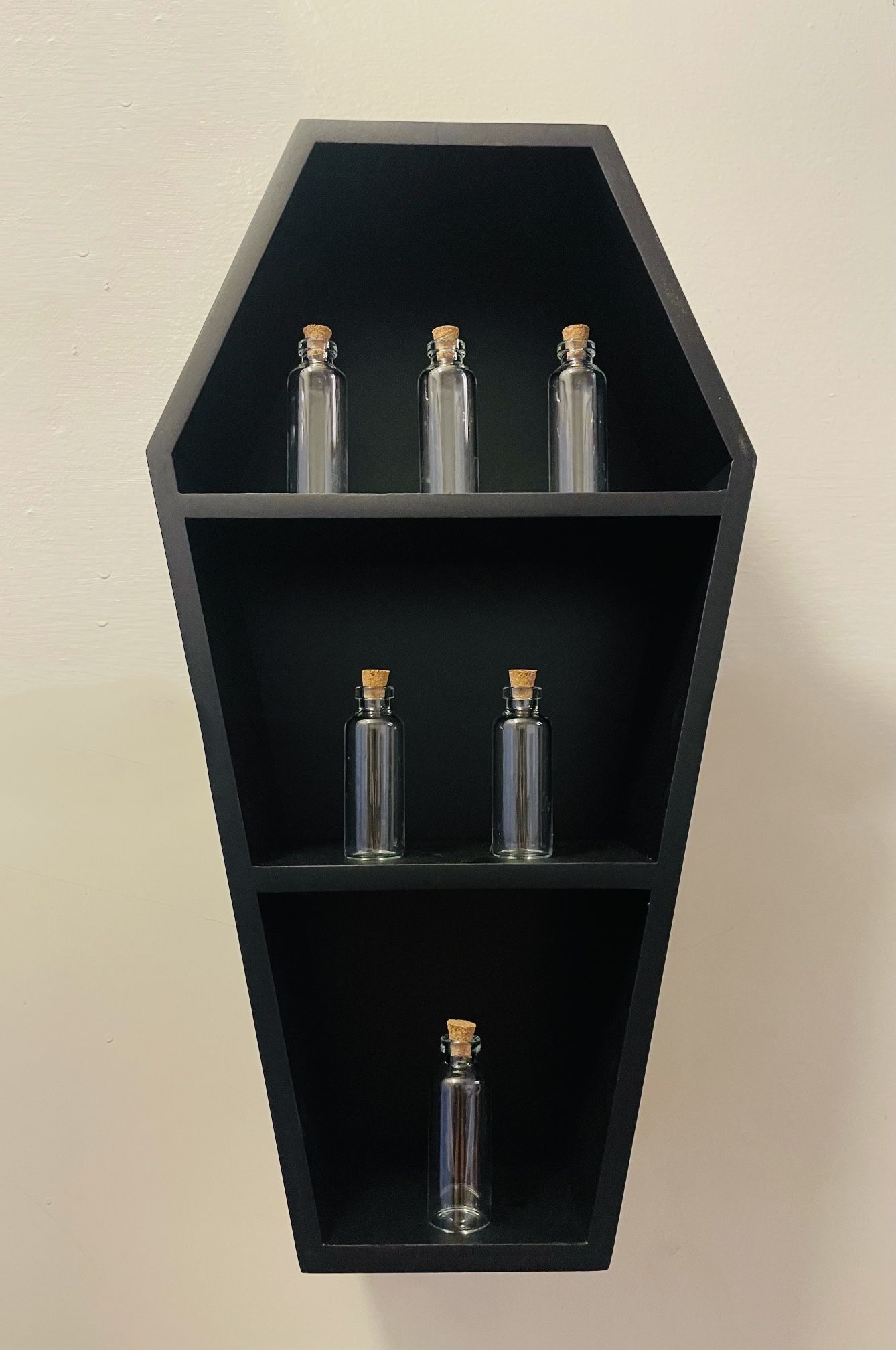 Coffin spice rack apothecary shelf.