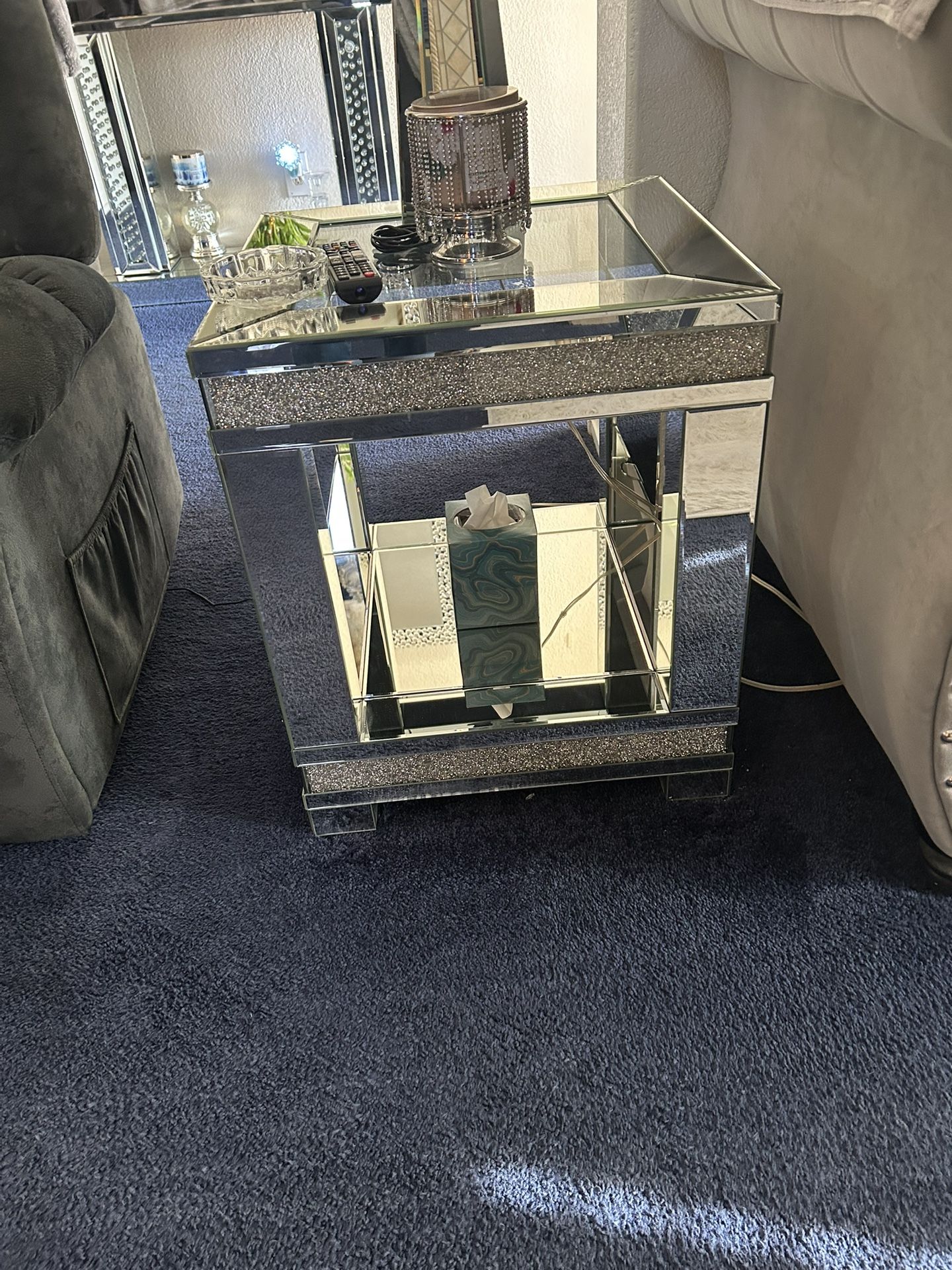 Items are in excellent condition despite the couple of cracks which can be easily fixed if you have the time just to buy small mirror panels to replace the panel that's cracked… The picture showed the cracks No delivery. Tables and lamps were $1000 alone and the buffet was 500 so asking good price but will take best offer