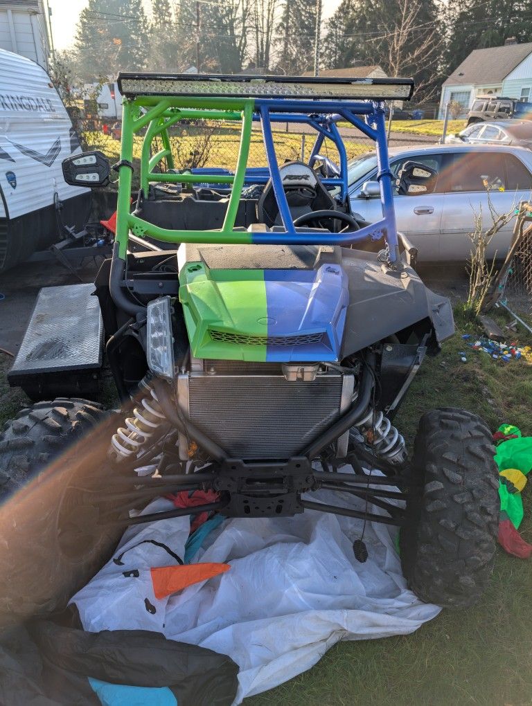 I am selling my Polaris RZR because it's been sitting for the past 2.5 years and I never have the time or opportunity to take it out anymore. Everything runs fine, and would definitely recommend a tune-up. Overall I would consider this somewhat of a project that is why I have it listed for a low price. A few of the are missing such as the passenger side fenders"I have the fender flares, just missing the actual side fenders. It is also missing the passenger side section of the front hood. Other than that, it has everything else including a bunch of aftermarket performance upgrades. Need to sell asap I am taking the best offer I receive! *Rugged radio communication and intercom system *New metal full size doors *Street legal set-up (front and rear turn signals, brake lights, ect..... *Performance charge pipe, air intake, down pipe, front inter-cooler, blow off valve, vacuum lines. Tuning chip, with high output fuel injectors & lifters. RS1 clutch kit, spring, weights, and pins. UTV wench set-up Light bar, side mirrors with spot lights, HID headlights as well as undercarriage/ground effects (color changing lighting) Off road tires are 9/10 condition. Racing bucket seats with padded 5-point racing harness Seat belts. Thank you and please feel free to ask any questions you may have