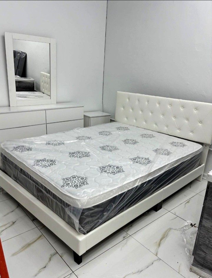 INCLUDES ⚪️ •QUEEN SIZE BED •DRESSER WITH MIRROR •CHEST •TWO NIGHTSTANDS (MATTRESS NOT INCLUDED)