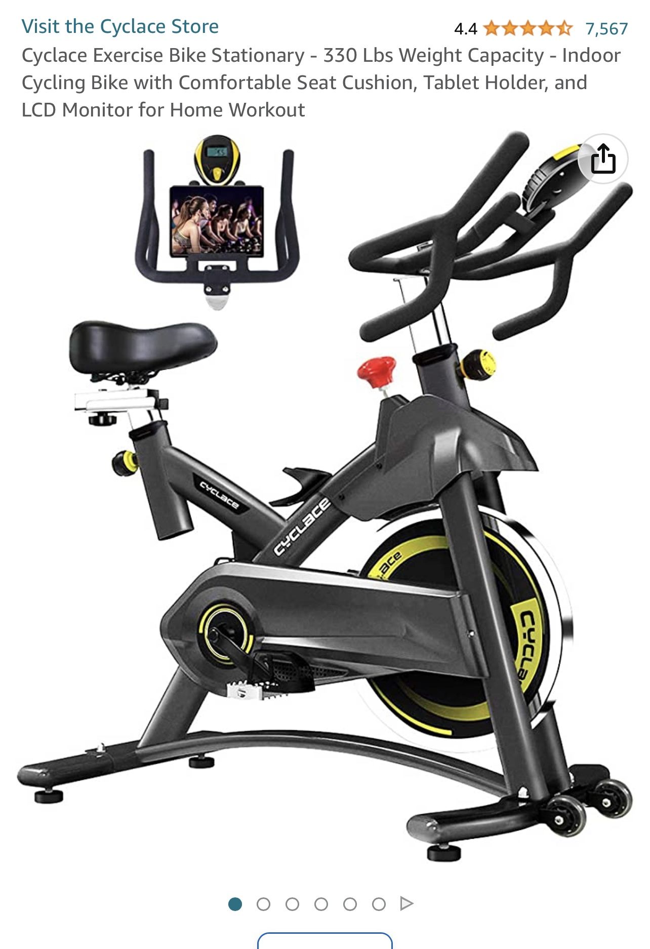 Brand Cyclace Special Feature Adjustable Seat Color Black Power Source Battery Powered Recommended Uses For Product Indoor Item Weight 36 Pounds Material Material Product Dimensions 40.9"D x 24.2"W x 47.9"H Maximum Weight Recommendation 330 Pounds Model Name Indoor Exercize Bike Stationary Cycling Bike - Cardio Bike with Monitor and Phone Holder for Home ExerciseIndoor Exercize Bike Stationary Cycling Bike - Cardio Bike with Monitor and Phone Holder for Home Exercise