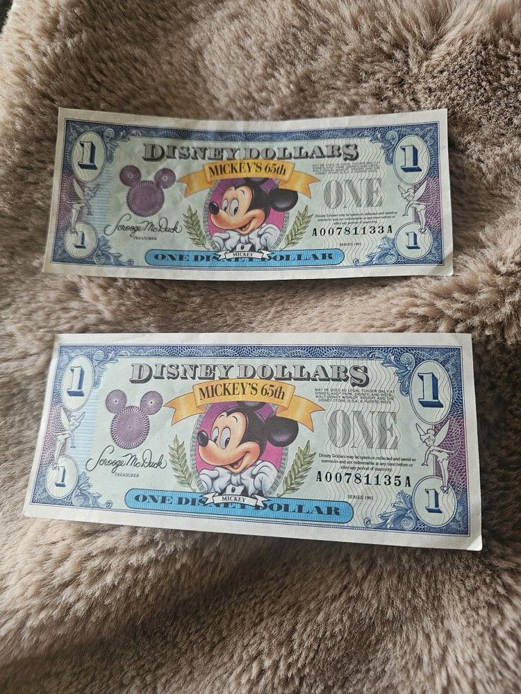1993 Mickey’s 65th Anniversary Disney Dollar – Consecutive Serials Sold as pair