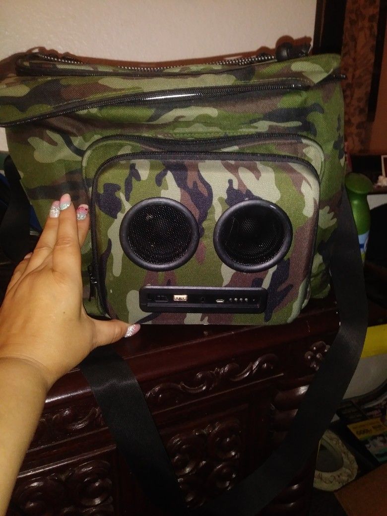 Never used. Rip rips or tears inside or out. Its called Real Super Cooler that has 2 Bluetooth speakers that pretty awesome! 2 mesh pockets on both sides & 2 zippers on top. Plus shoulder strap.