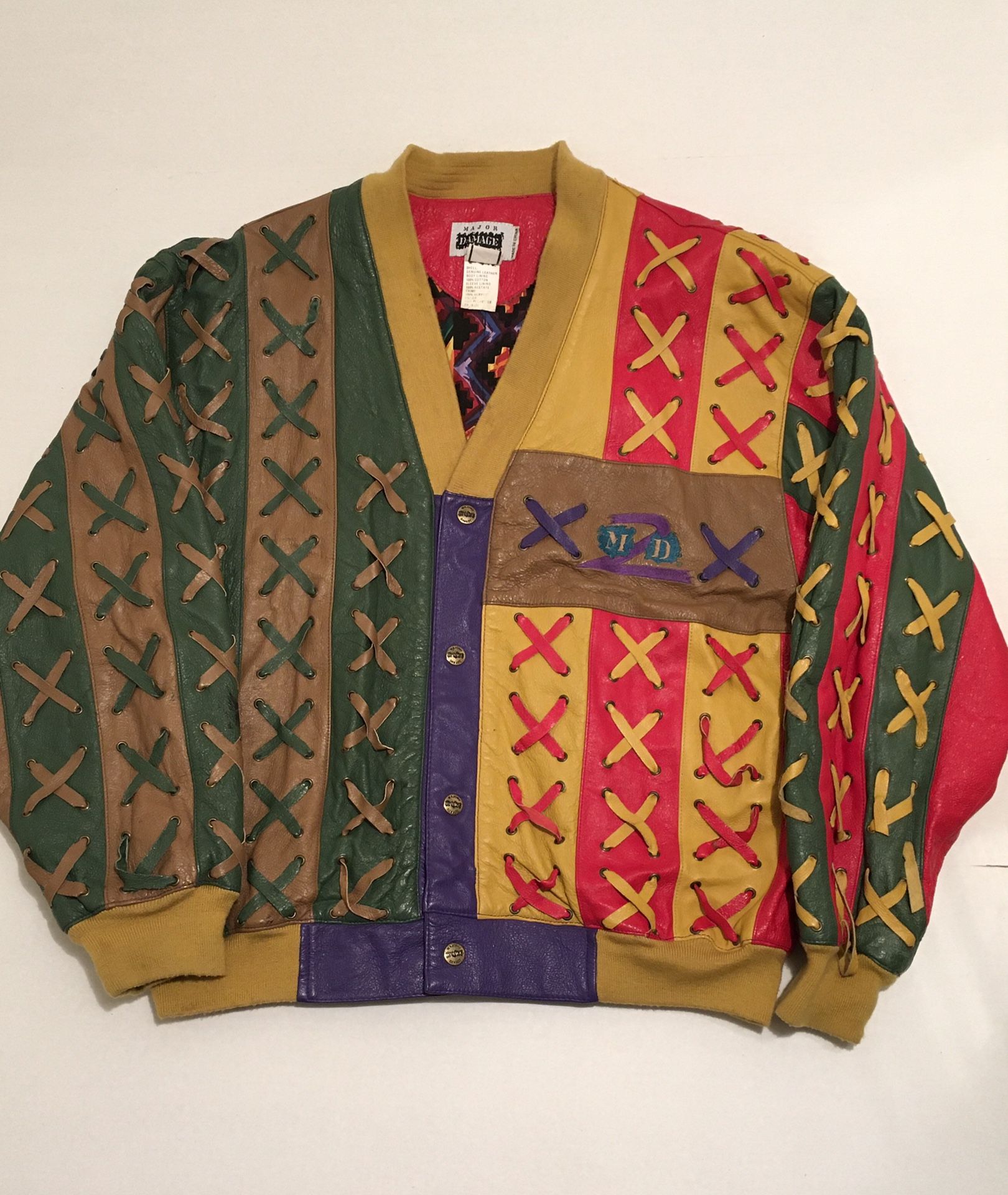 Chek out my other listing for high end quality, classic early 90ties Limited Edition Custom Fit Major Damage V neck X leather jacket, Xl. Major Damage was high fashion in the 80s and 90s. This jacket was extremely limited, worn by artist Shaba Ranks and Bounty Killer. The details and Colorway is insane. In excellent condition. I also have the matching hat on my other listing. I can meet in person, sorry no shipping.
