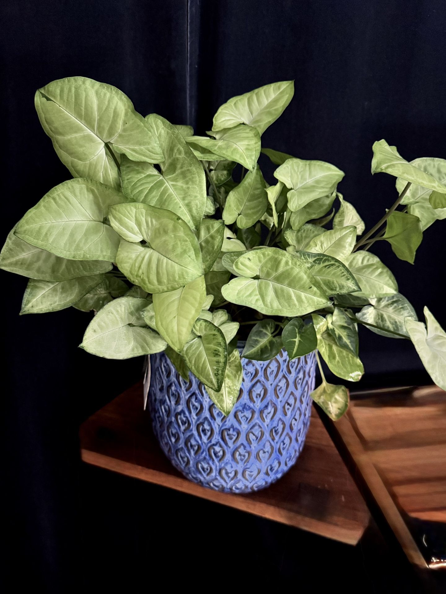 This Arrowhead plants comes in the blue handmade Vietnamese pot. This Arrowhead plant is quite special as it’s a third generation cutting handed down to me by my mother. I’m only selling this beautiful plant because I’d like to share such beauty, and it’s time it goes to another home where it will be well loved. I’m asking $75.00 for both the plant and the pot. This arrowhead plant is turnkey and ready to be displayed freshly potted one week ago and won’t need to be potted for at least another six months. I do have to add that this plant really needs to be seen in person to do it any justice at all. I attempted taking pictures of this plan for at least an hour, and I could not capture the brilliant color of green that this plant has in its leaves. The two pictures posted are nice, but they have a yellow tint that just is not part of the leaves. It’s bright green, almost lime to mint.