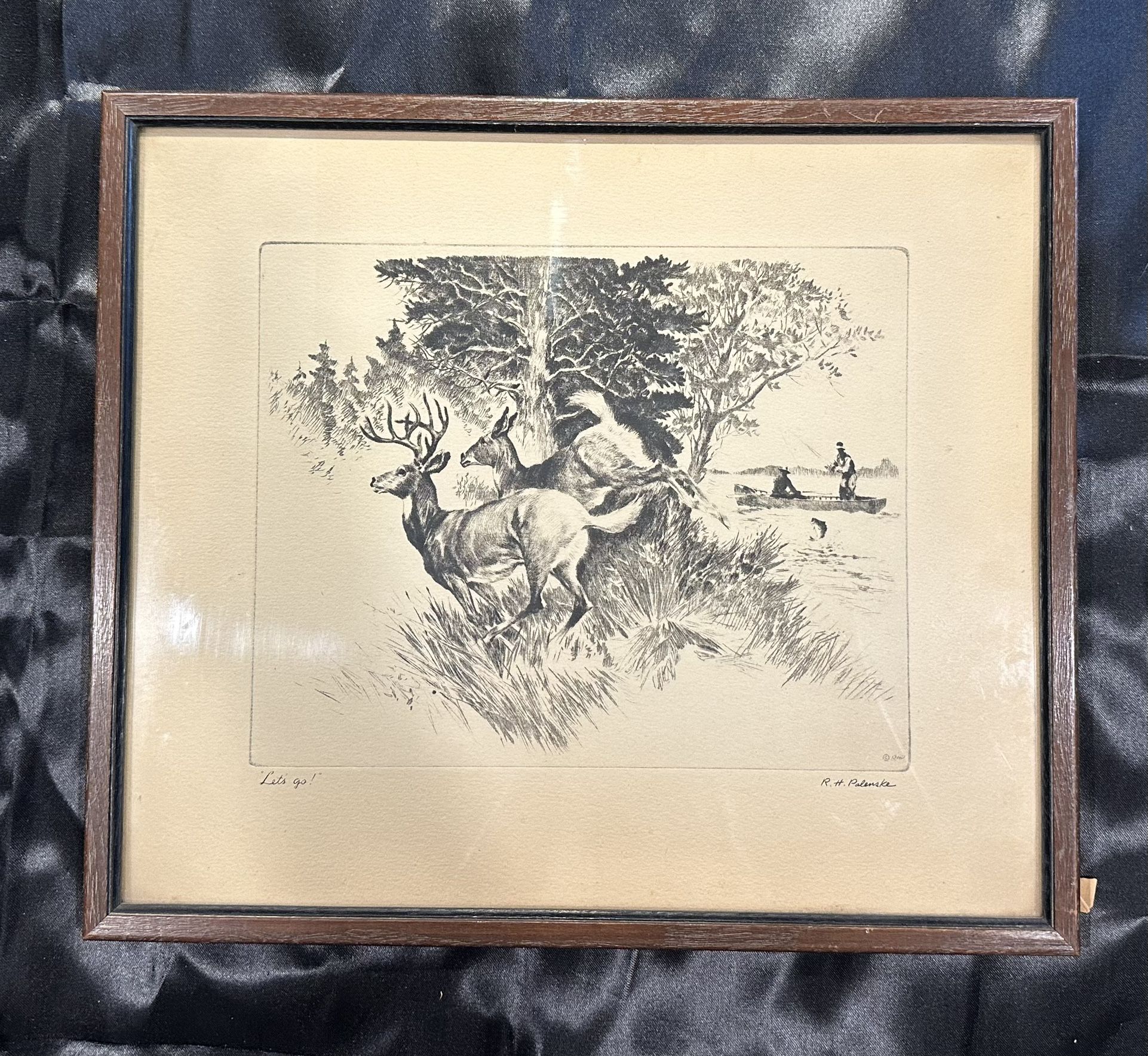 12 3/4”H x 14 3/4”L - This vintage framed print from the 1930s by artist Reinhold H Palenske is an original piece from the Art Deco period. Made on paper using lithography, this medium-sized print captures the essence of the 1920s-1940s era with its unique style and aesthetic. The framed artwork is a timeless piece that would make a great addition to any art collection or as a statement piece in a vintage-inspired home decor setting.