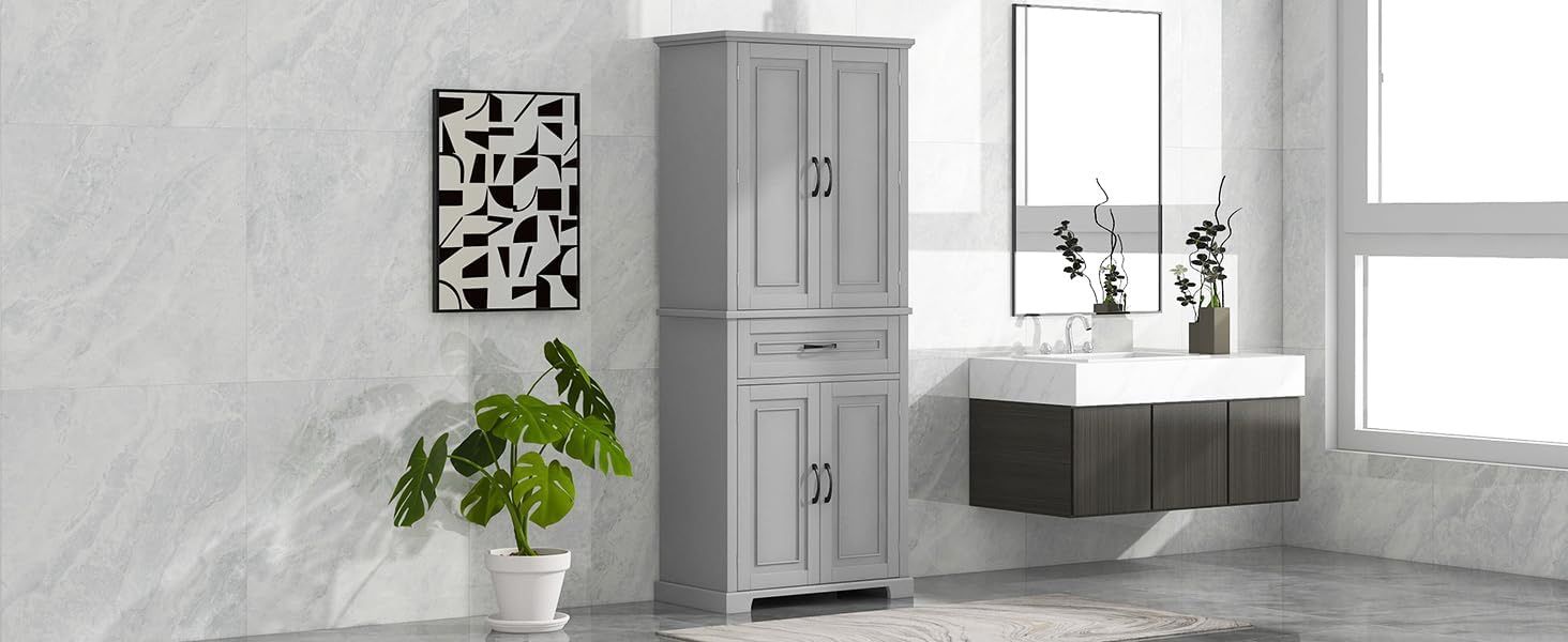 Bathroom Storage Cabinet with Doors: Grey MDF Board Adjustable Shelf & Drawer - Multiple Storage Space for Bathroom Office & Kitchen Organization