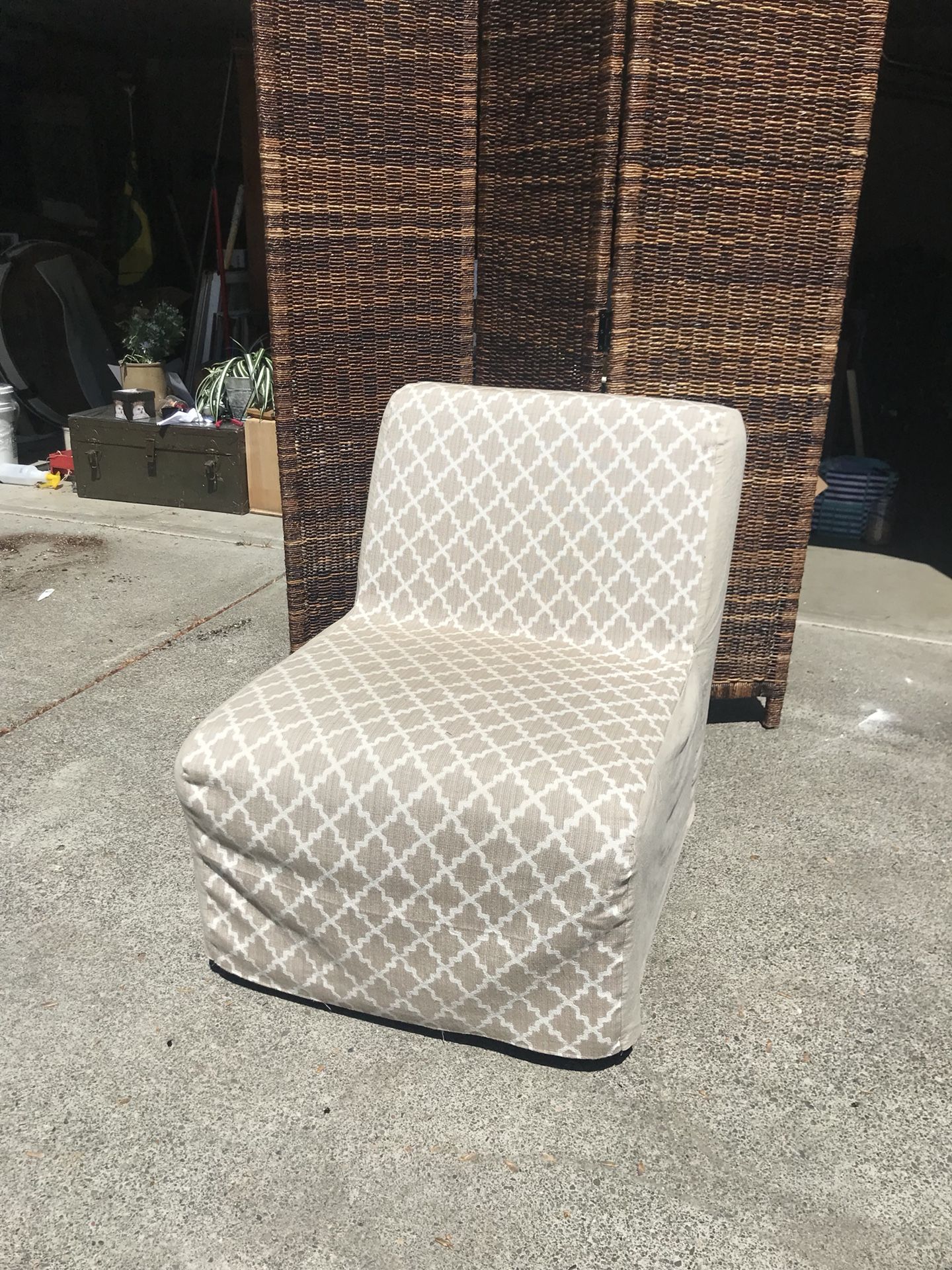 Bi-cast leather chairs that started to peel so I made slip covers It is a beige lattice pattern Chairs are in great structural condition besides leather issues ...