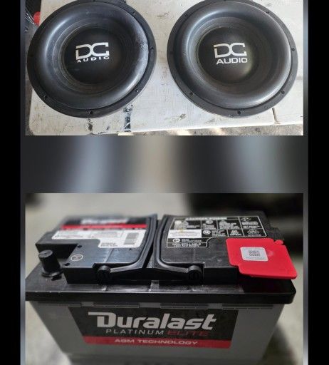 Hello I have these two subs for sale and this battery all works very well you can come to my house, to review and buy each piece has its individual sale price Subs DC AUDIO LEVEL 4 DUAL COIL 4-OHM 1500RMS a sub has a small scratch on the fom but it was already repaired and that does not affect its good function Each sub is selling for around $500 i only ask for $600 for both good deal New Battery DURALAST PLATINUM ÉLITE AGM TECHNOLOGY you can use this as second battery if you have a Strong audio sound to improve your sound I only ask for $200 Please just let me know which one you're interested in And I gladly show it to you please only serious people no games or offenses just money in hand I don't accept any ridiculous offer thanks for watching