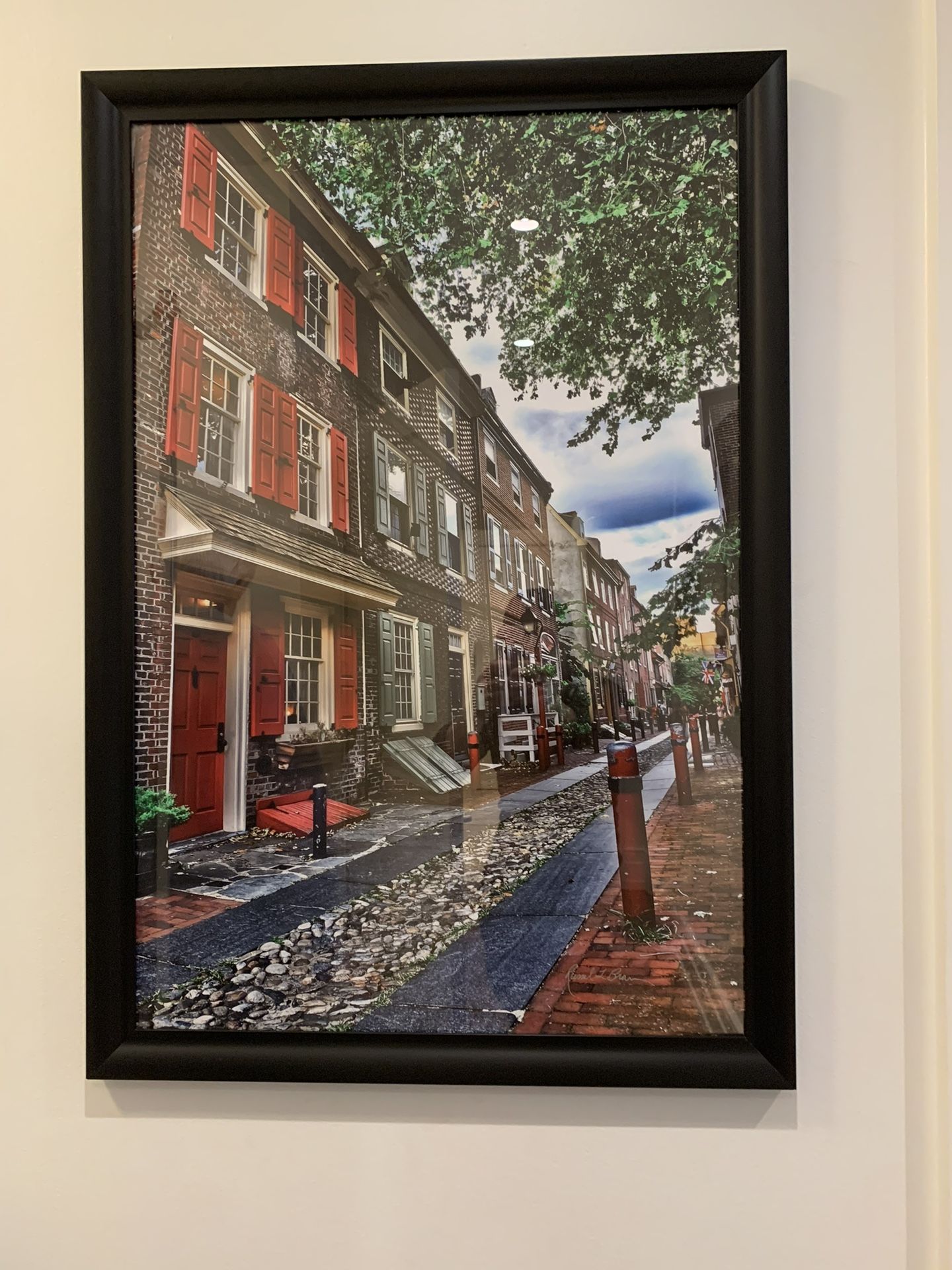 Signed, Elfreth's Alley photography art from Philadelphia Fine Art show by Russel L Brown. 24x36 matte photo in 27x39 Black frame
