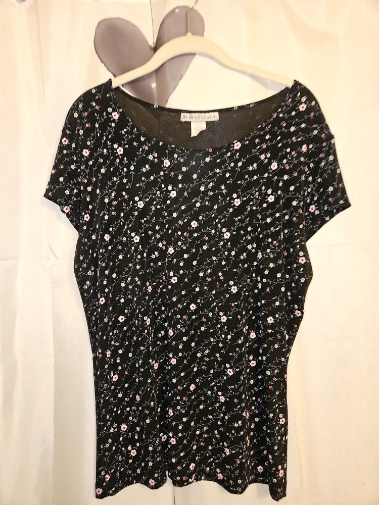 Dressbarn, flower print short sleeves top. Size large, stretch. Bundle for discount.