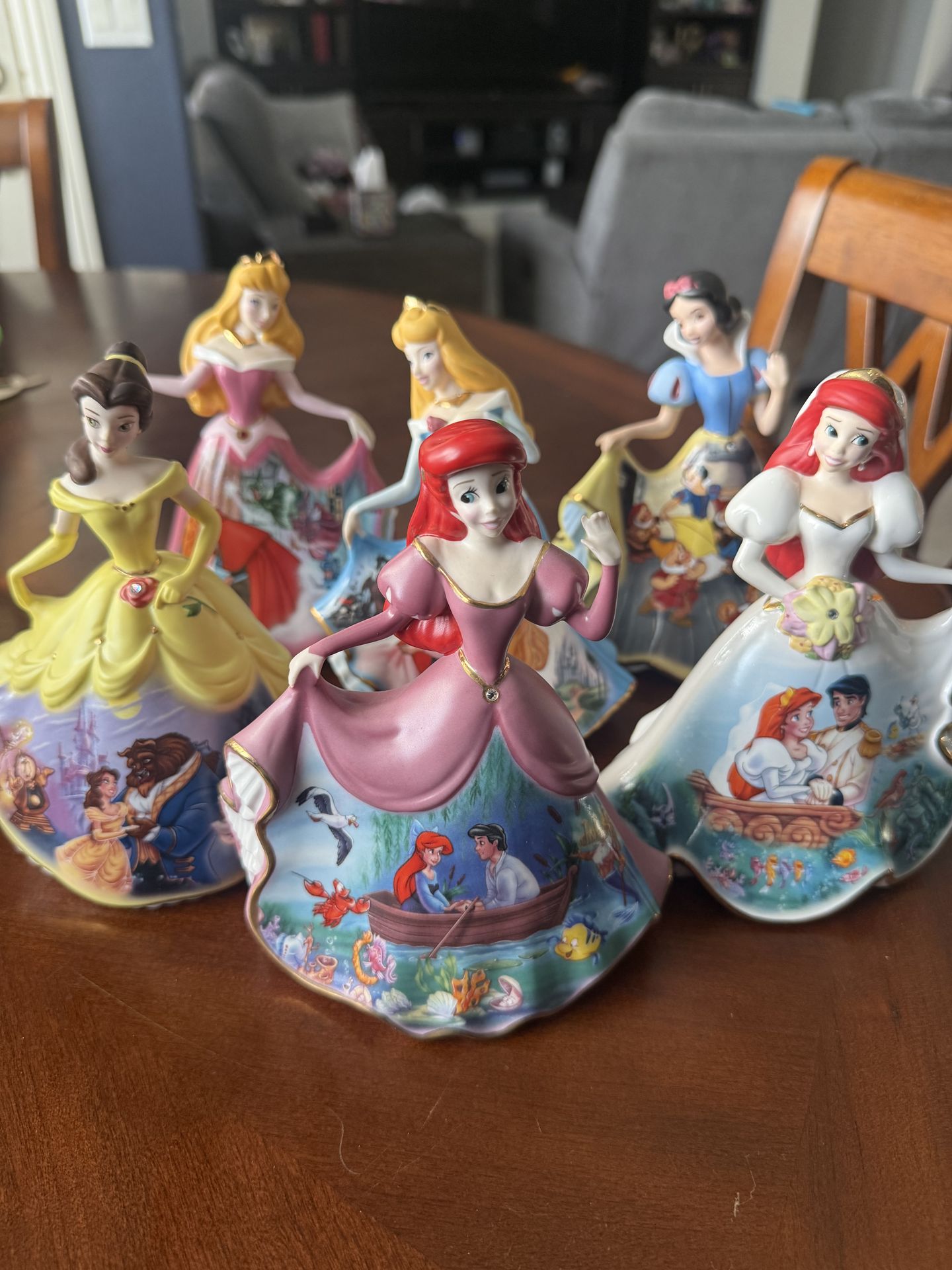 Six princesses. 2 Ariel, 2 Aurora, Snow White, Belle. I do not have the boxes. However, they are in great condition with no damage. Pick up at farm and Egan crest 89166 or at IKEA.