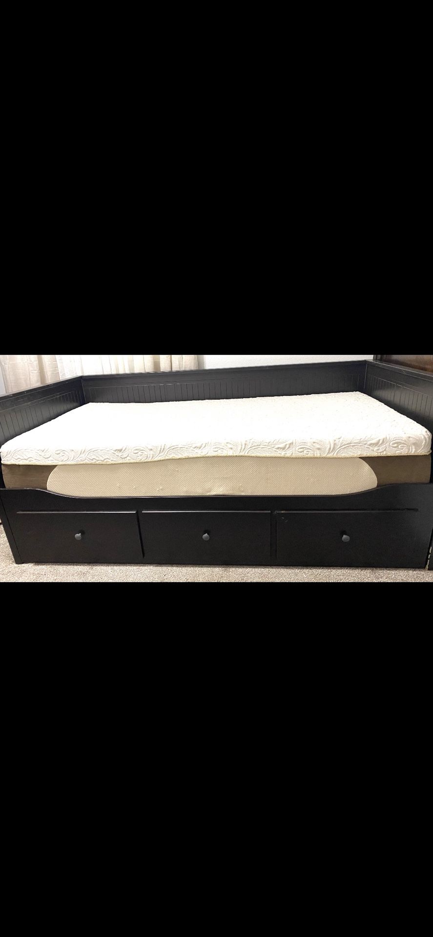 Very high end 12” Dynasty gel memory foam twin mattress practically brand new. Barely used. Extremely comfortable! Comes with cover and dark brown 3 drawer daybed. Daybed has a couple fixable scuffs from moving. Mattress cost almost $600, cover cost $99, daybed cost $200, over $900 total….selling for $200 OBO. MPU in Alma. No holds.