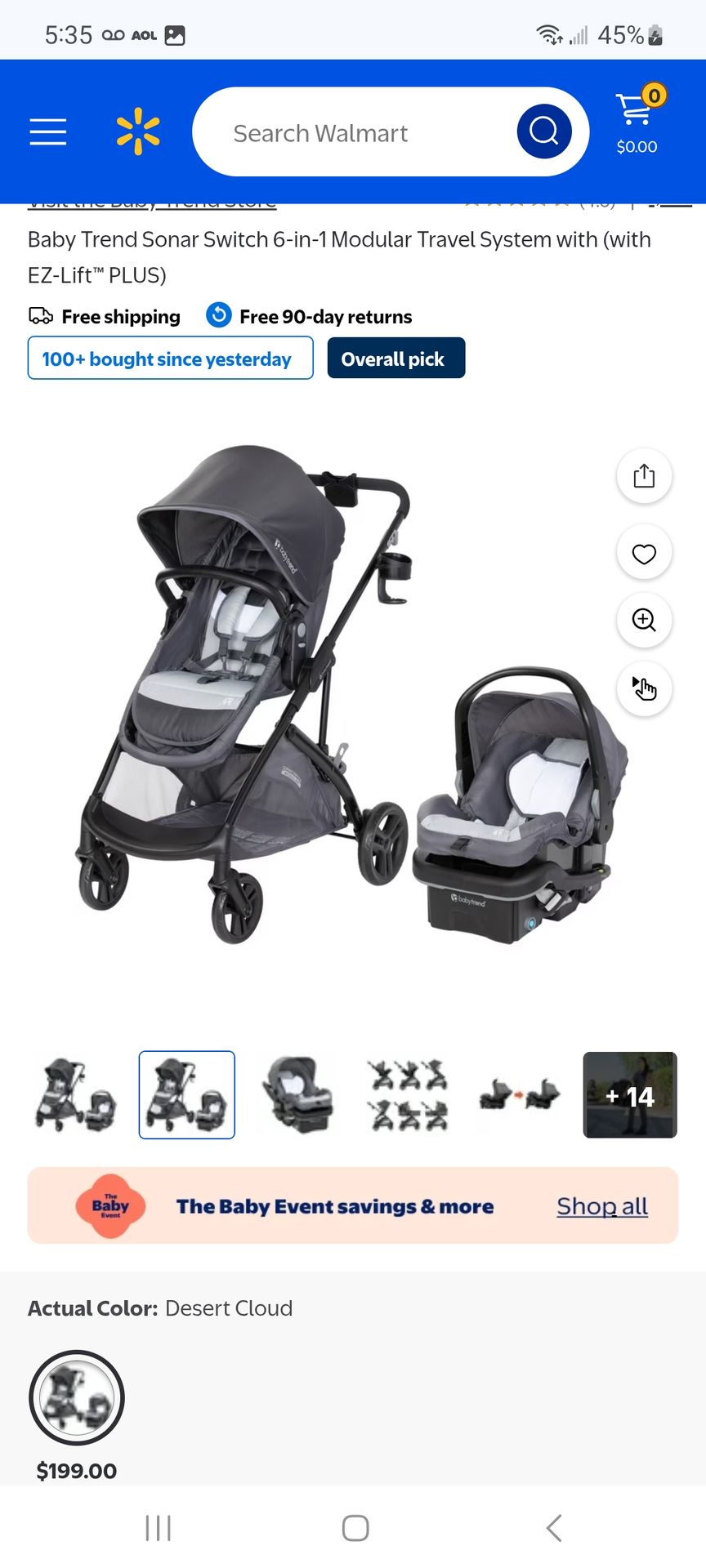Baby Trend Sonar Switch 6-in-1 Modular Travel System with (with EZ-Lift™ PLUS) $140