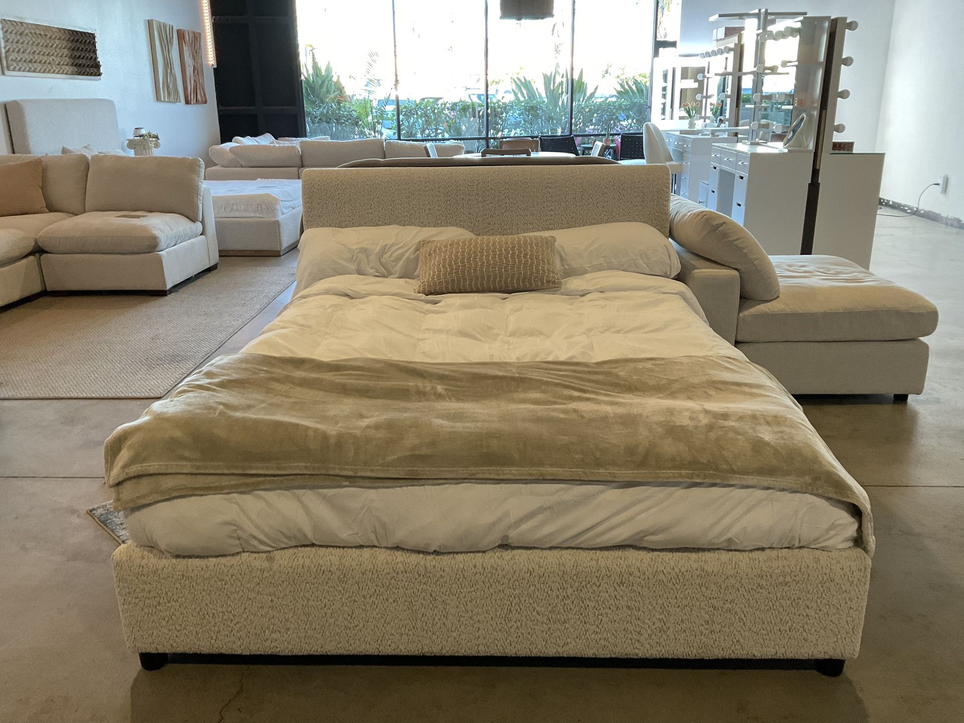 Upgrade your bedroom with a modern, upholstered platform bed designed for everyday comfort and long-term durability. The Vert-style bed features soft textured chenille fabric, a strong slat-ready frame, and a low-profile modern look that works perfectly in minimalist, modern, or Japandi-style spaces. ⭐ Key Features • Soft textured chenille upholstery — durable & easy to maintain • Platform slat support — no box spring needed • Heavy-duty frame — built for daily use • Low-profile modern design — clean, timeless style • 2-Year manufacturer warranty included 🎨 Available Colors • Gray • White Bouclé • Black 📏 Size Options & Pricing • Full — $525 • Queen — $575 • King — $675 Extra Perks: • 💳 Buy Now, Pay Later options available • 🚚FREE LOCAL delivery 📍 Visit our local showroom or 💬 Message us now for availability, sizing, or exclusive online pricing.
