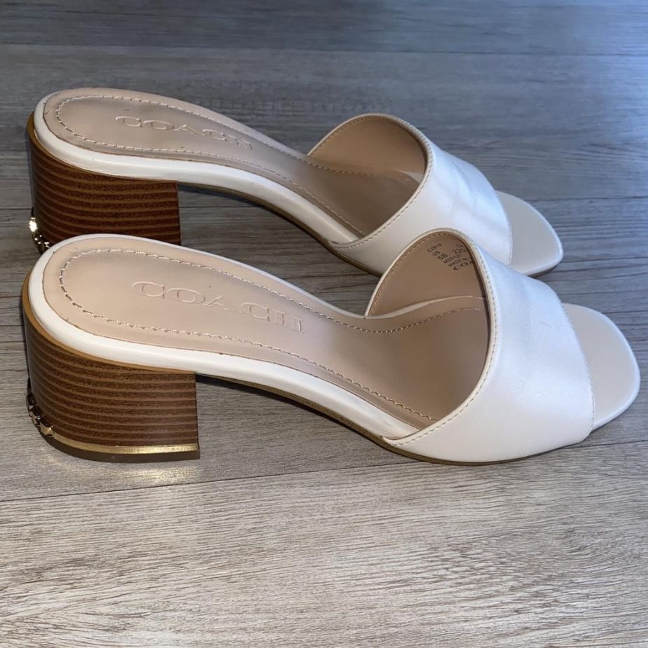 Maggi Coach leather sandals w block heel worn once no longer sold color chalk box included size 5 #coach