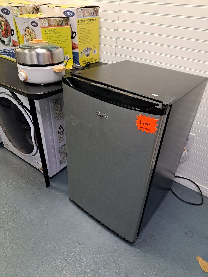 Whirlpool mini refrigerator and freezer, in great condition and comes with a 30-day guarantee. Item like New We also do Leasing.