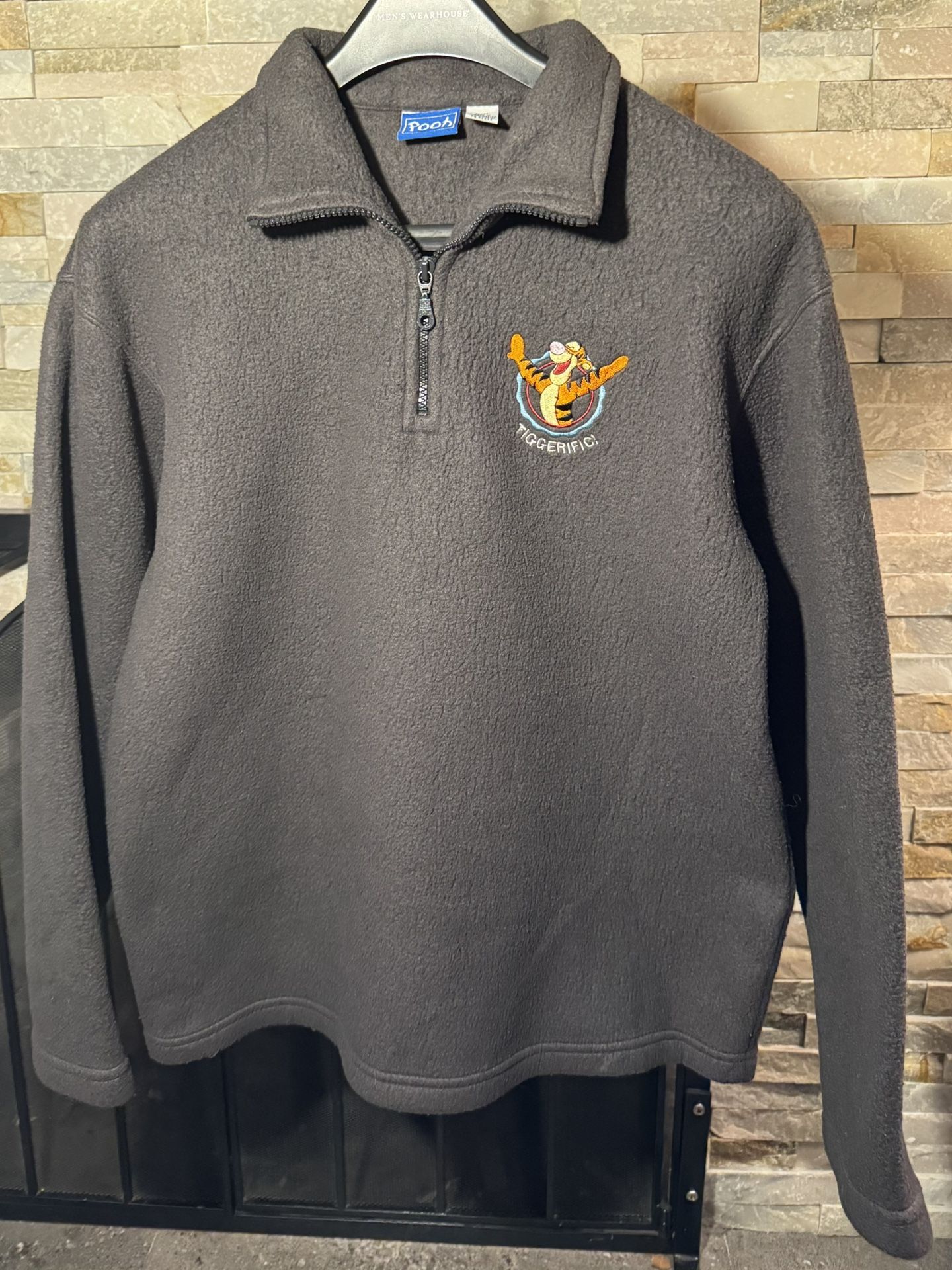 Adult Med Pooh Tiggerific embroidered 1/4-zip fleece pullover 22x25 Arm 22 EUC