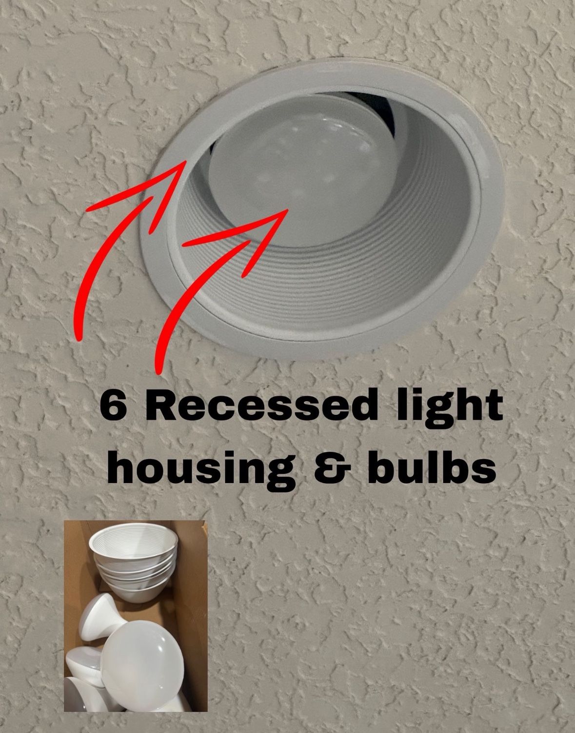 6 recessed lights, 4 ceiling lights available. $30.00 for all. Or purchase separately.