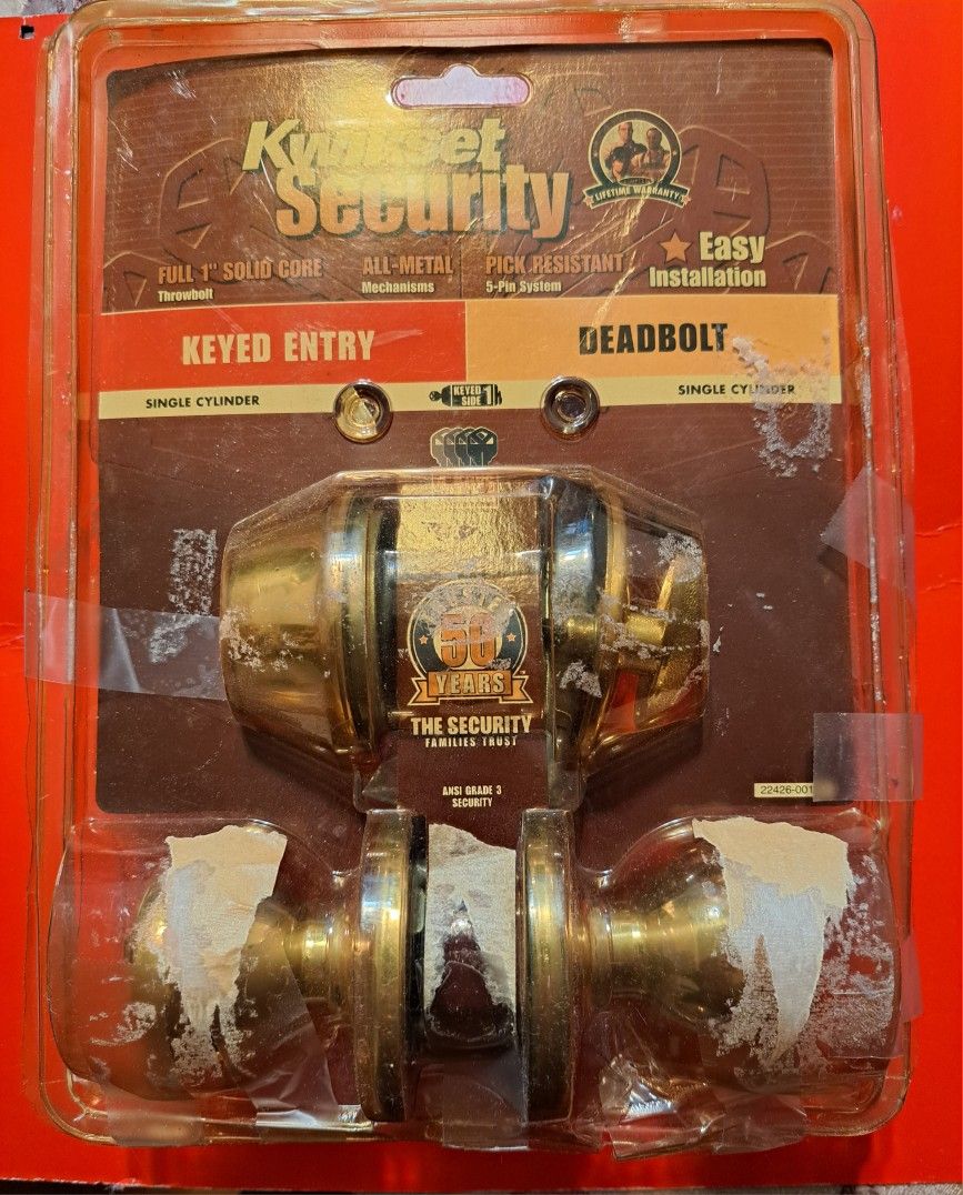 Brand new double cylinders locks for door, with 2 keys each one. Have all the parts for easy installation. The plastic case is cracked.