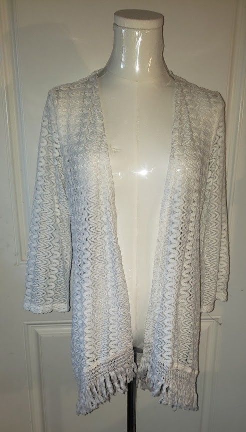 Self Esteem Knitted Beige/Off White Long Sleeve Loose Knit Cardigan (Size M). Has no rips or stains. Approx. 32"L x 15" waist; shoulder to shoulder: 14.5"; armpit to armpit: 16.75"; sleeve length: 18". $6. Cash ONLY. **Click on my Profile for similar and other listed items that might be of interest to you. Buy one, get one 50% off of equal or lesser value.** Located in South Natomas (95833)...pickup is also available in the Rosemont area (95826). Pickup from Elk Grove, Roseville, Davis, and other local areas will be considered.