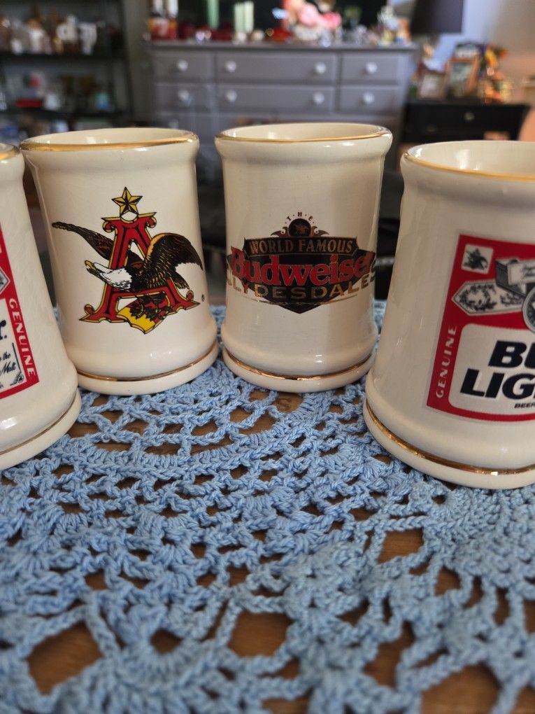 Mini ceramic budweiser shot glasses ( steins)