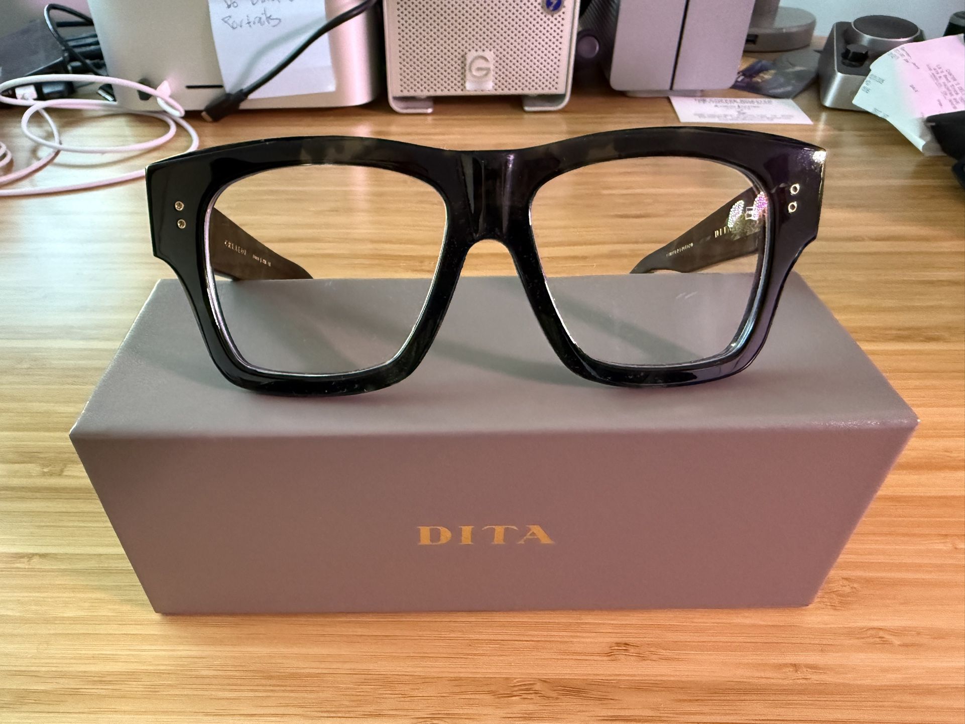 These beautiful glasses look brand new! They come with the original hard case, cleaning cloth, paperwork & soft case. I also have the original tinted green lenses that came with them. They’ve never been used because I have prescription lenses in them. Here’s the exact model number: Dita Creator 19004 PHC 54 Local pick up only and only cash offers please!