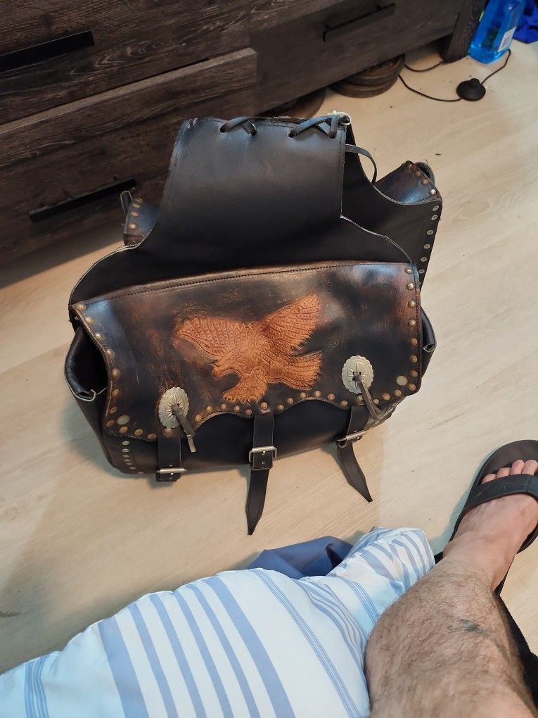 Pre-owned leather saddlebags. Used but in very good condition, real genuine leather not that pu stuff. Made in Mexico so you know they're the real deal