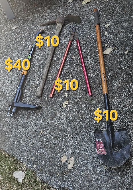 Standing weed puller. Like new. Pick axe Branch trimmers Shovel - sold