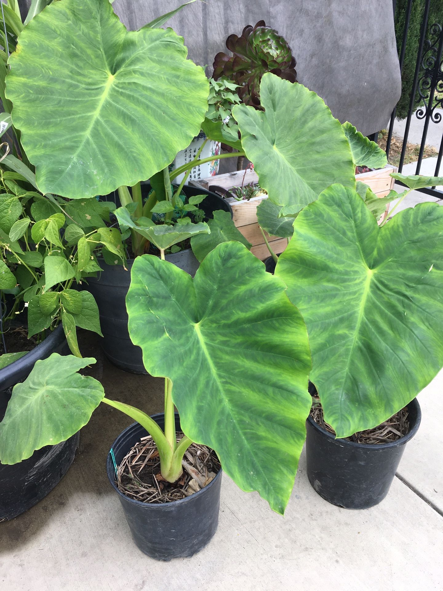 Mammoth Elephant Ear Plant This type of elephant ear is beautiful and they are huge variety. They have beautiful thick, heart-shaped green leaves. They can reach 6-15 feet in height in premium growing conditions. They are an awesome plant for both indoor and outdoor. It’s a great collection for both indoor and outdoor plant. $35 each in five gallons pot. $65 for two pots. Pick up available near King Taco in El Monte 91733. The main streets is Santa Anita Ave and Garvey Ave. Please make an appointment before you are coming. I also have lots of other items available such as herbs, fruit trees, vegetables, succulents, flowers, chafing dish set, sunglasses, garden tools, etc. Please check them out. Thanks from El Monte Green Garden!