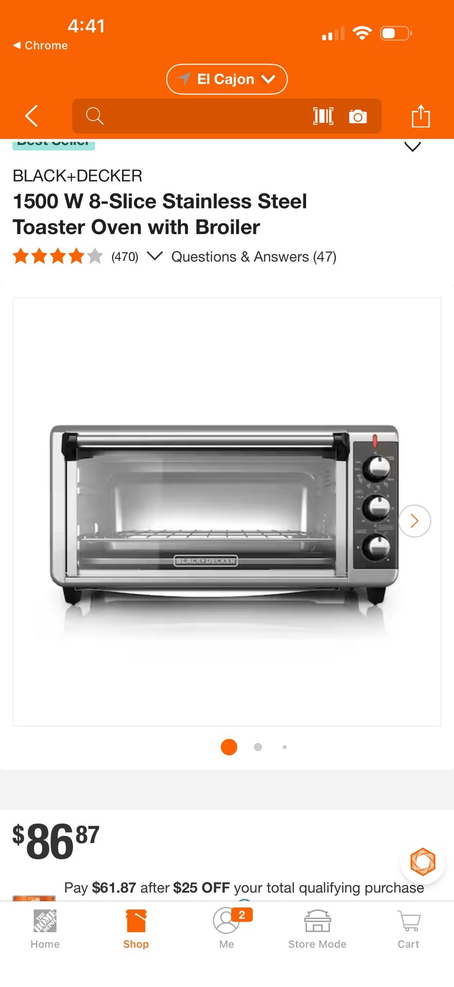 BLACK+DECKER 1500 W 8-Slice Stainless Steel Toaster Oven with Broiler