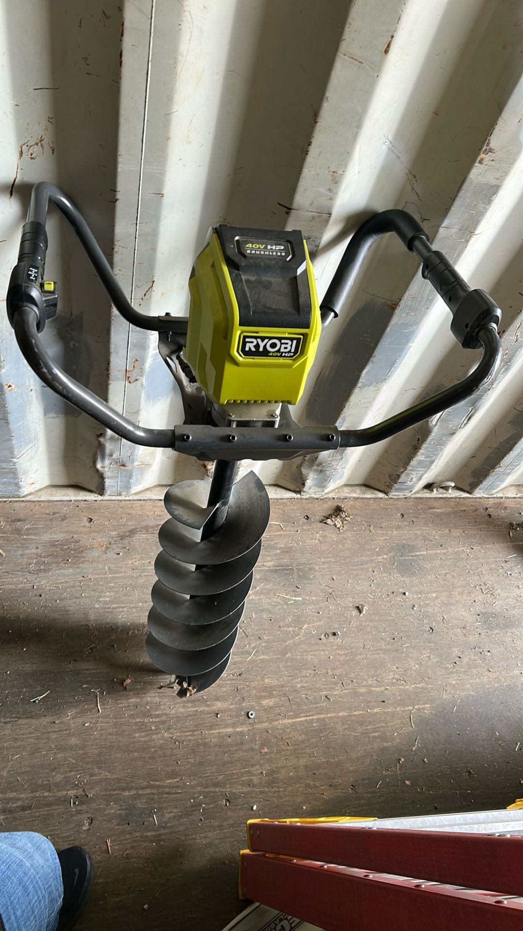 For sale is a nice used Ryobi 40 V electric auger post hole digger comes complete with battery and charger and auger 200 bucks