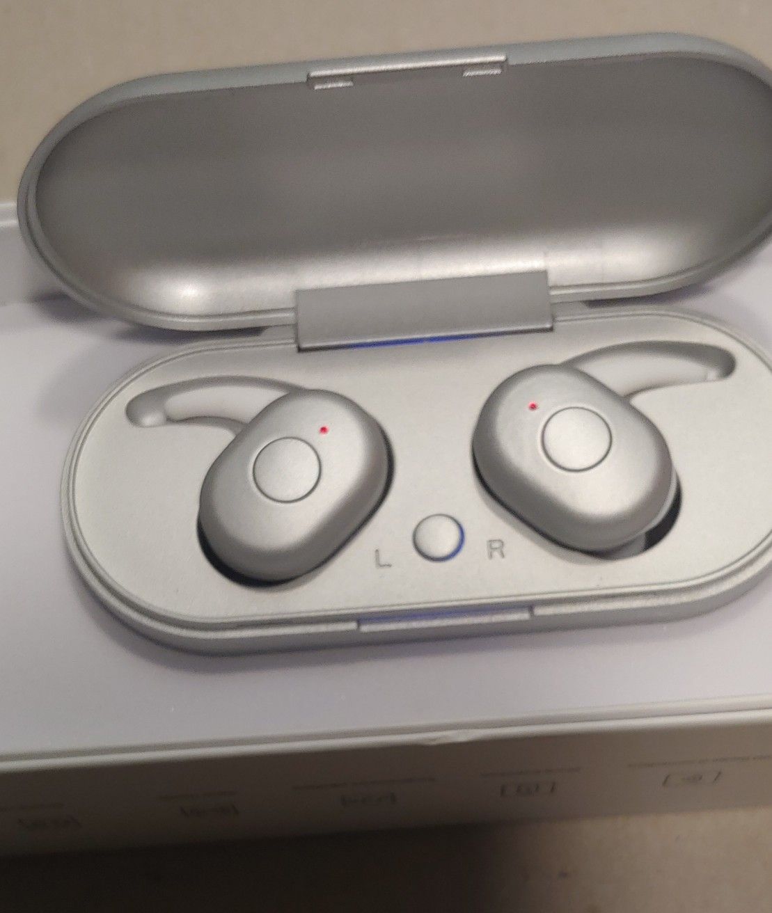 Stereo Earbuds, with charging case. 100hr stand by time. Speaker Sensitivity: 95+3db. Great for gym, running , work. Hands free. With great Stereo Sound. New in Box, Opened one to show.