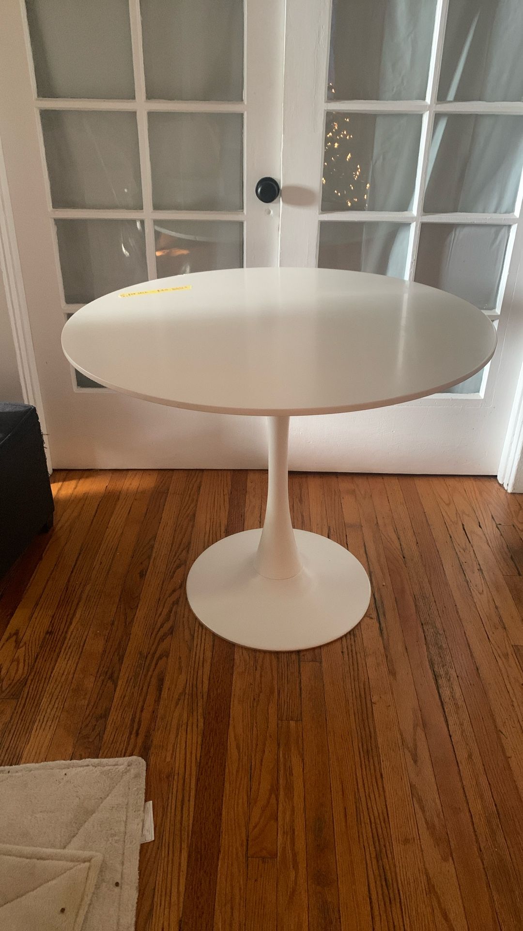 Used NO CHAIRS Two dents on the side Would be perfect for a holiday dinner with a table cloth and fits four people easily 36” Height 29 “ Pick up only