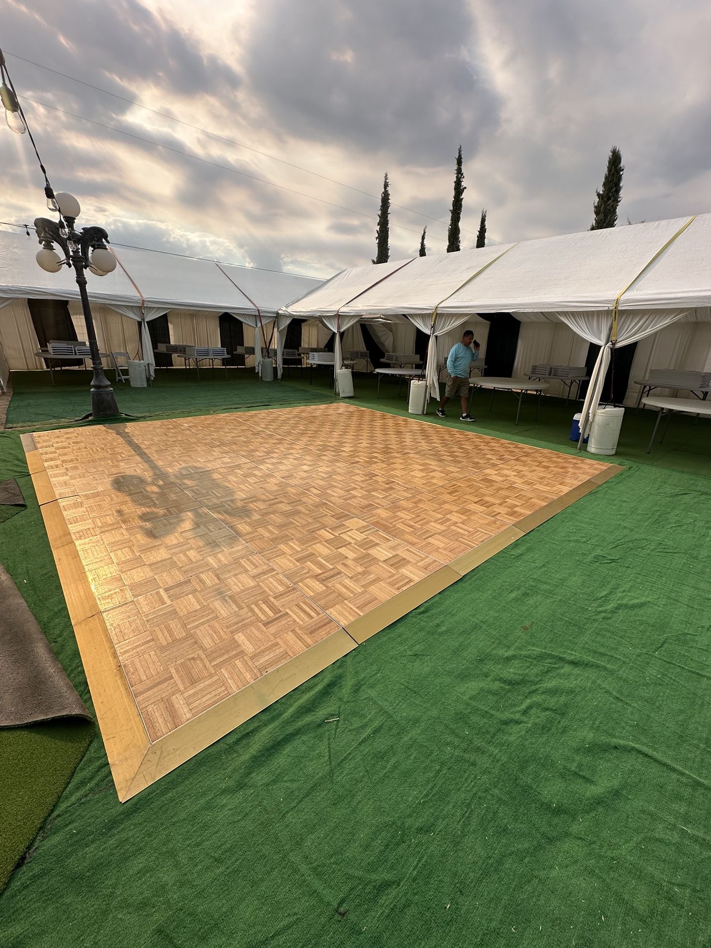 18x18 it comes in section of 3x3 square piece Can make different sizes like 12x12 - 15x15 or bigger very good condition solid wood, and quality easy to install and remove it $6,000