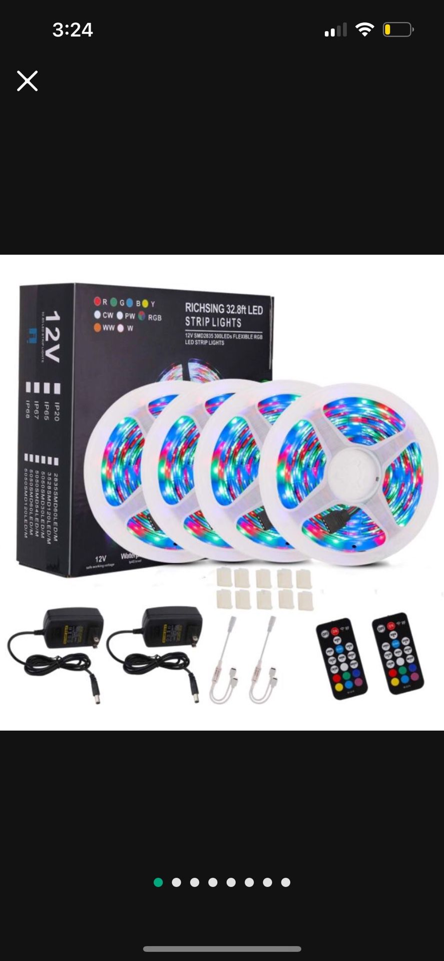 Brand new, sealed box. Has two power adapter and two remote for using in different places, comes as 17ft * 4 pieces. Total 66ft. I brought for 44.99 + tax.