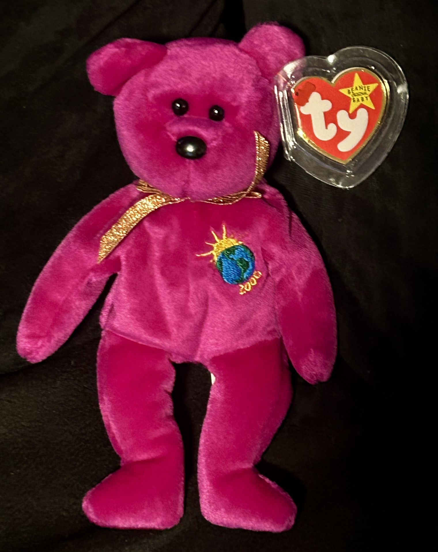 TAG ERROR “Millenium" Millennium Bear Purple Ty Beanie Baby Plush Toy w/ hologram tag***