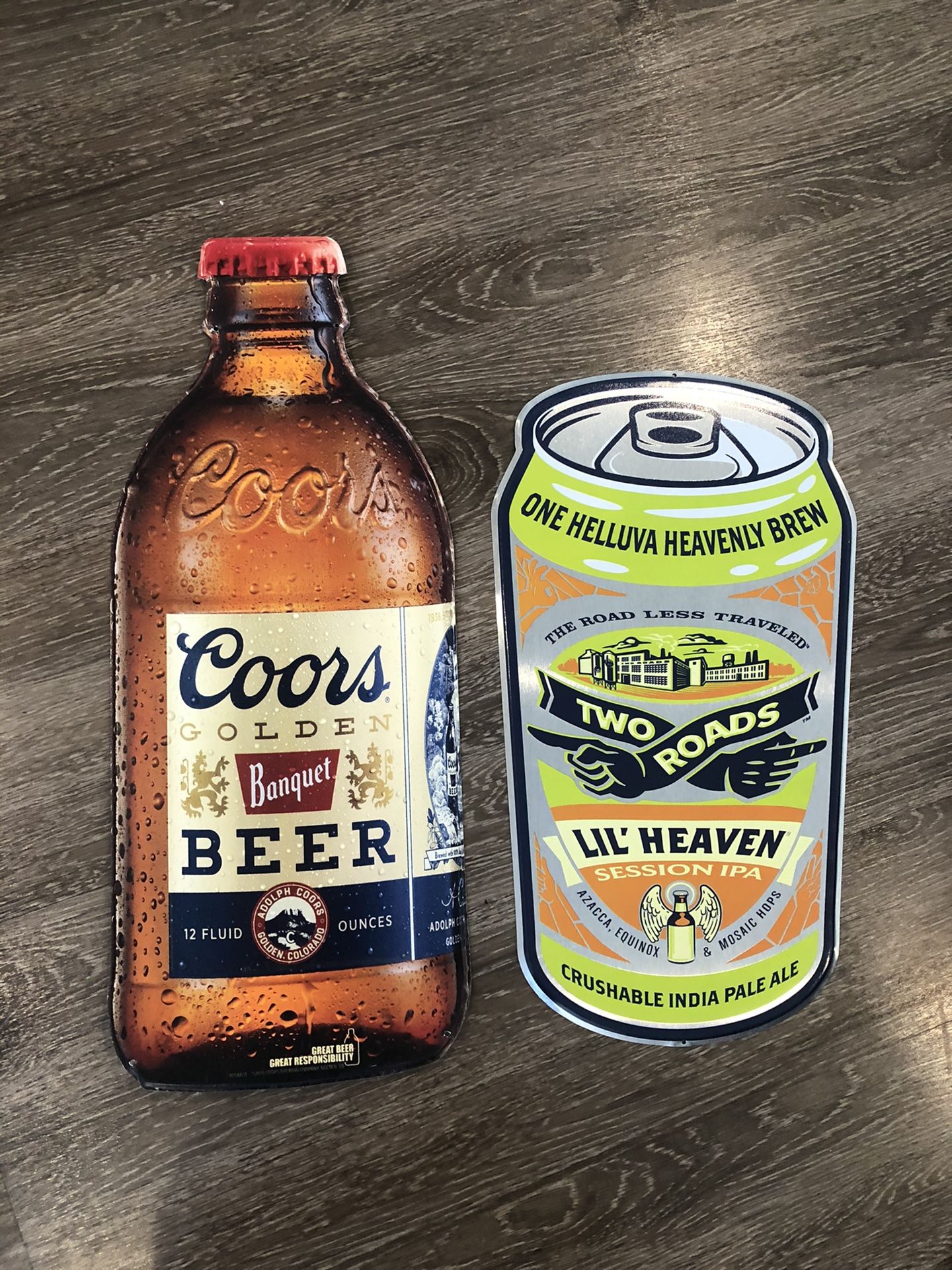 Tin beer signs. About 4 feet tall. Light weight. Like new.